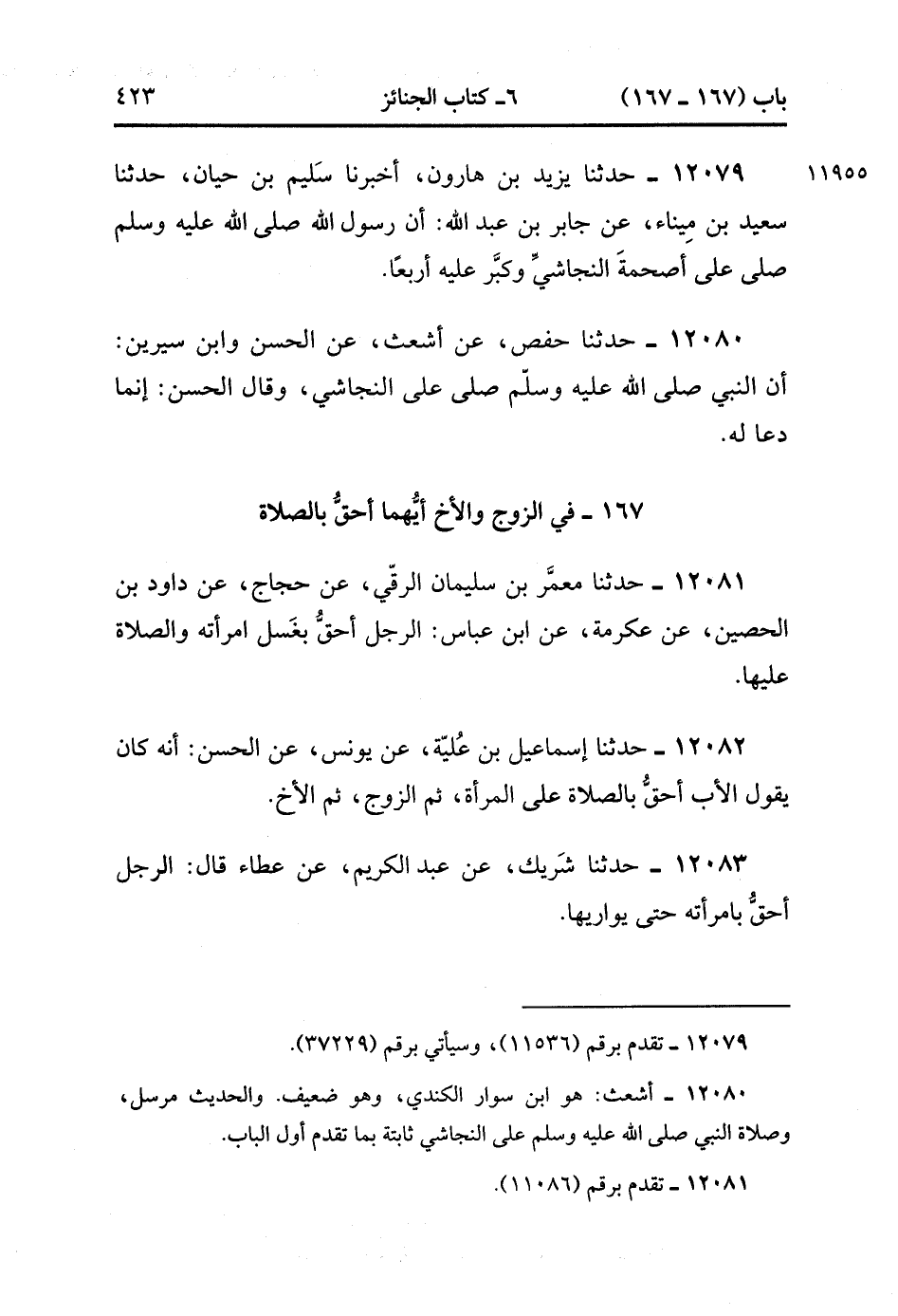 167- في الزوج وَالأَخِ أَيُّهُمَا أَحَقُّ بِالصَّلاَةِ.