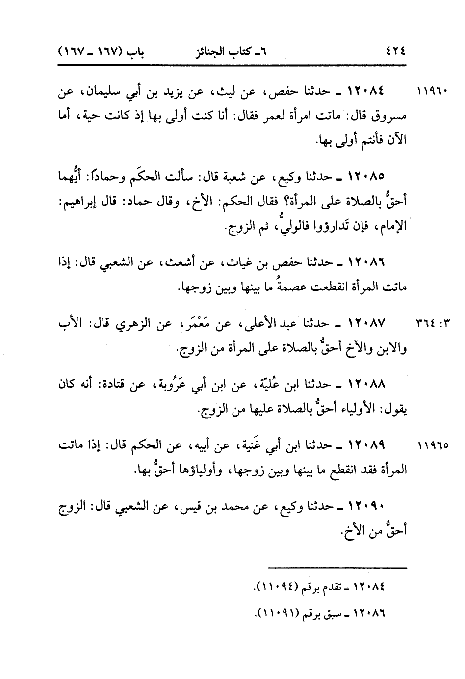 12090- حدَّثَنَا وَكِيعٌ ، عَنْ مُحَمَّدِ بْنِ قَيْسٍ ، عَنْ َالشَّعْبِيِّ ، قَالَ : الزَّوْجُ أَحَقُّ منْ الأَخُ. (3/364).