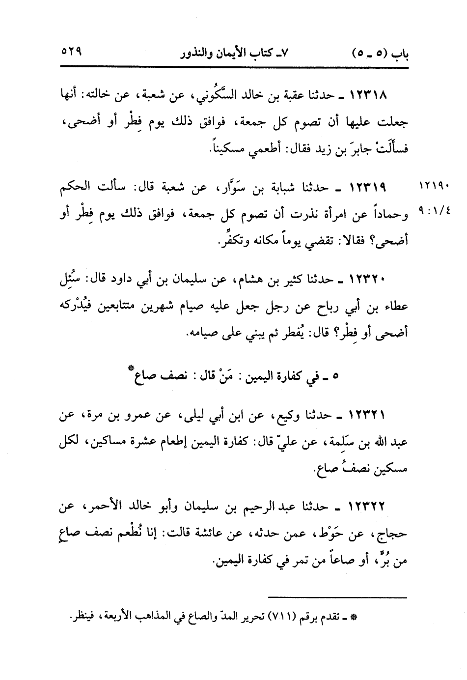 12322- حدَّثَنَا عَبْدُ الرَّحِيمِ بْنُ سُلَيْمَانَ , وَأَبُو خَالِدٍ الأَحْمَرِِ ، عَنْ حَجَّاجٍ , عَنْ حَوْطٍ , عَمَّنْ حَدَّثَهُ , عَنْ عَائِشَةَ , قَالَتْ : إنَّا نُطْعِمُ نِصْفَ صَاعٍ مِنْ بُرٍّ ، أَوْ صَاعًا مِنْ تَمْرٍ فِي كَفَّارَةِ الْيَمِينِ. (4/9:1).