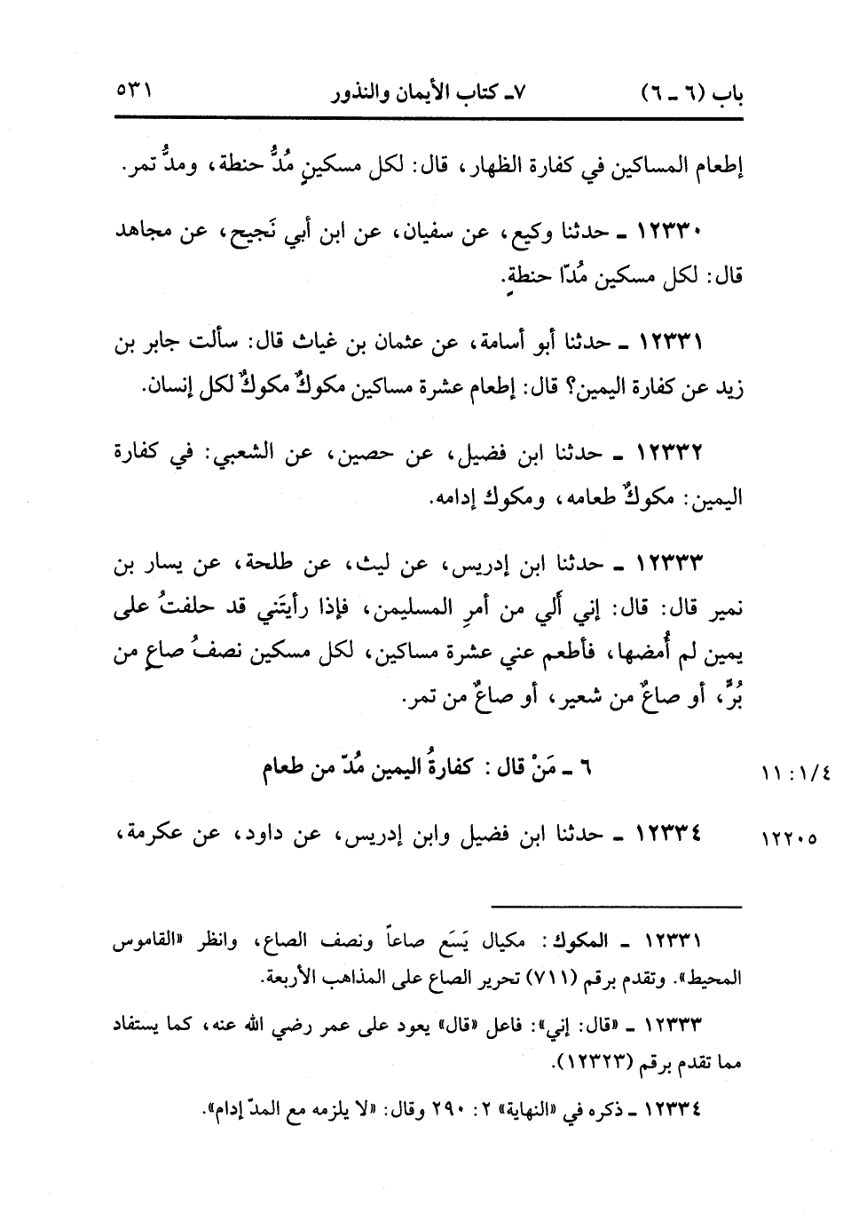 6- مَنْ قَالَ كَفَّارَةُ الْيَمِينِ مُدٌّ مِنْ طَعَامٍ.