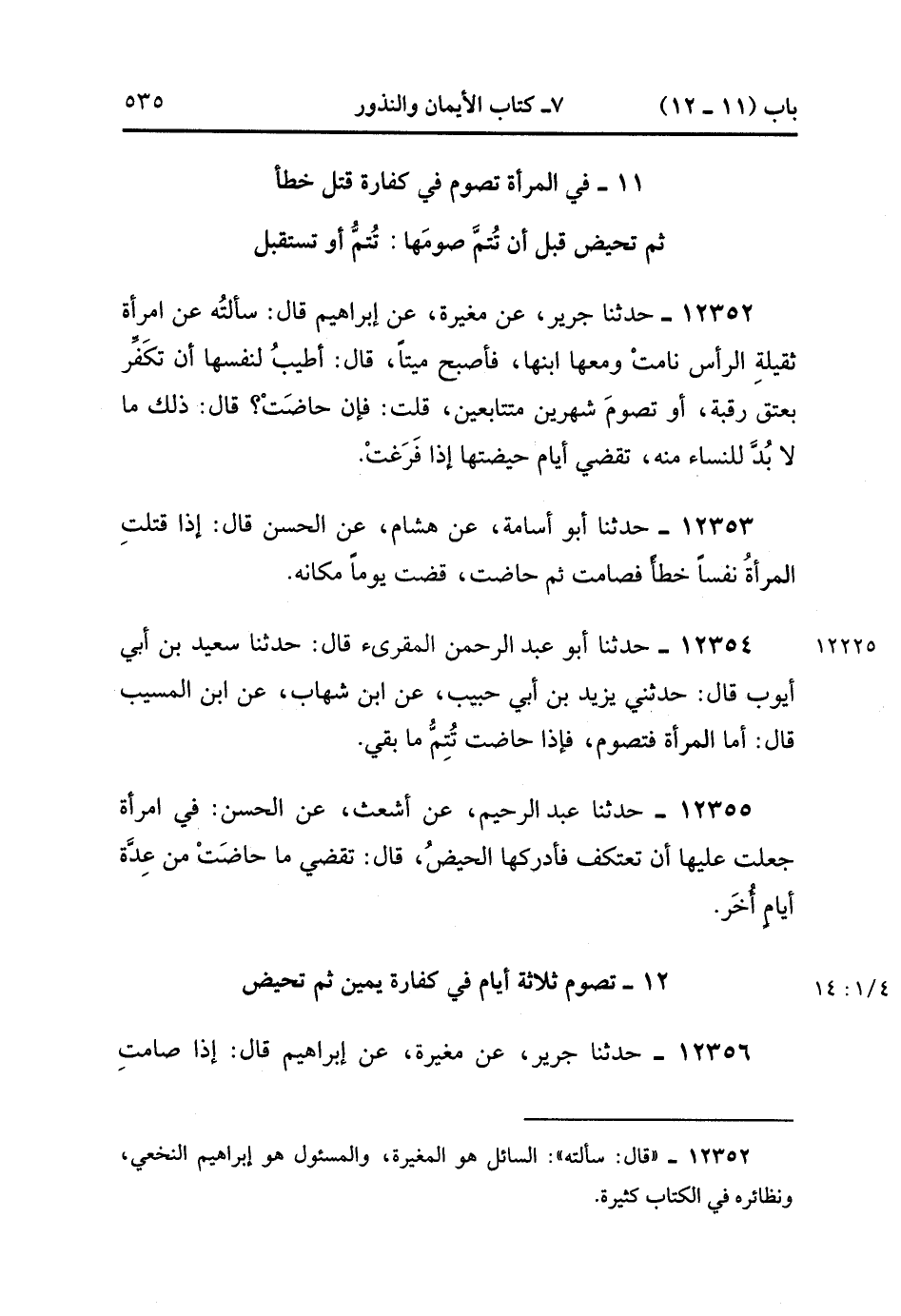 12- تَصُومُ ثَلاَثَةِ أَيَّامٍ فِي كَفَّارَةِ يَمِينٍ ثُمَّ تَحِيضُ.