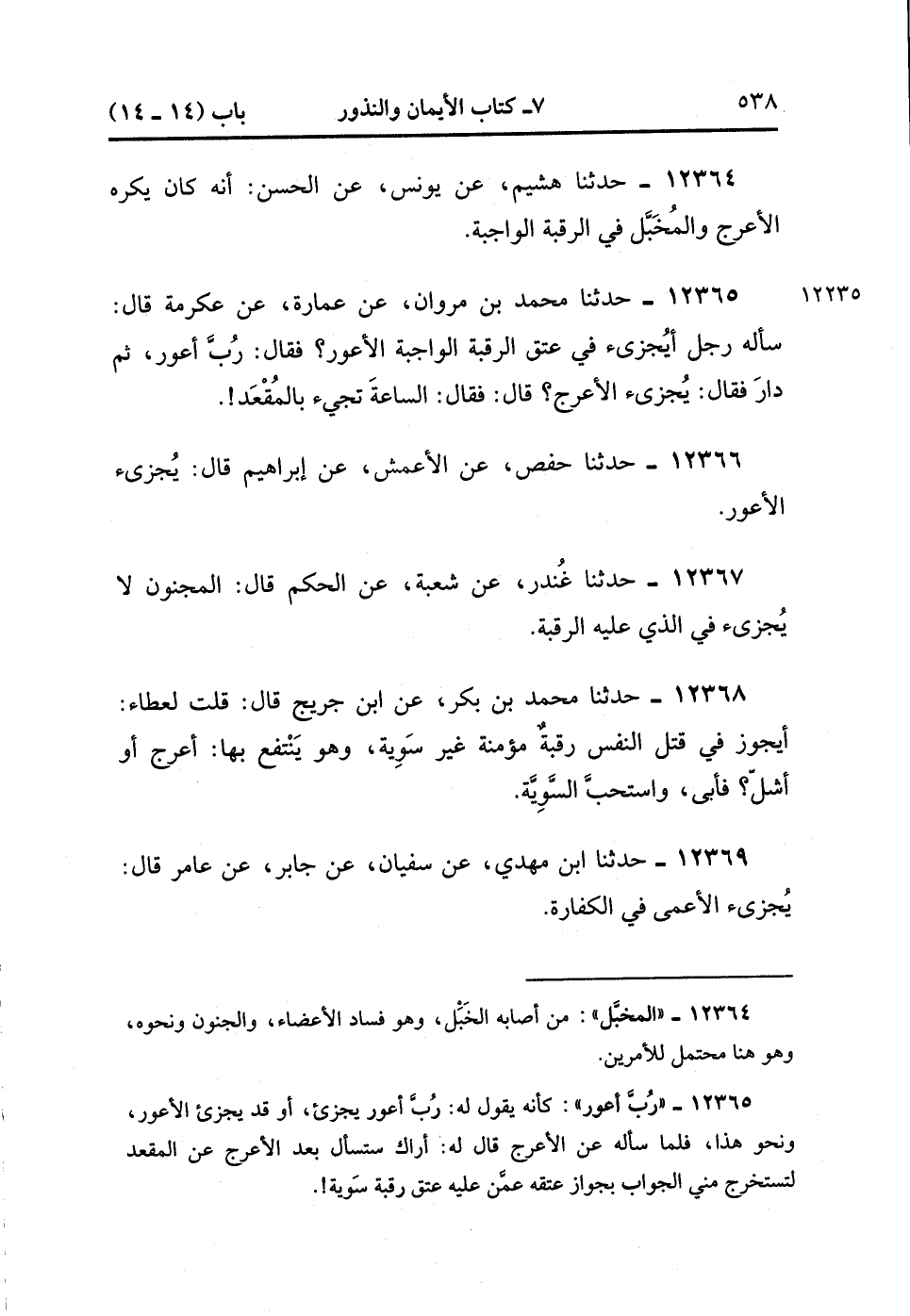 12364- حدَّثَنَا هُشَيْمٌ ، عَنْ يُونُسَ ، عَنِ الْحَسَنِ : أَنَّهُ كَانَ يَكْرَهُ الأَعْرَجَ وَالْمُخَبَّلَ فِي الرَّقَبَةِ الْوَاجِبَةِ.