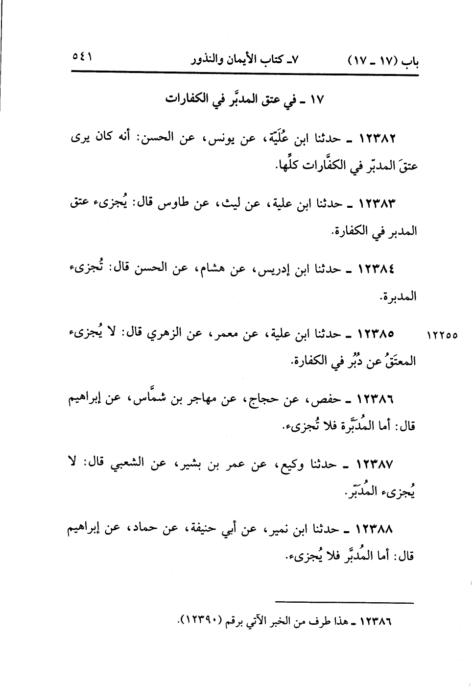 12388- حدَّثَنَا ابْنُ نُمَيْرٍ ، عَنْ أَبِي حَنِيفَةَ ، عَنْ حَمَّادٍ ، عَنْ إبْرَاهِيمَ قَالَ : أَمَّا الْمُدَبَّرُ فَلاَ يُجْزِئُ. (4/17:1).