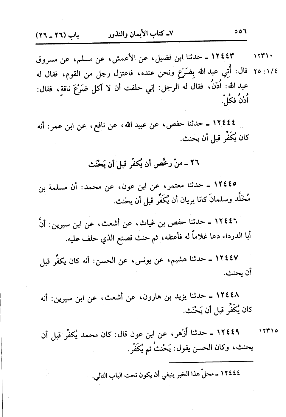 26- من رخص أَنْ يُكَفِّرَ قَبْلَ أَنْ يَحْنَثَ.