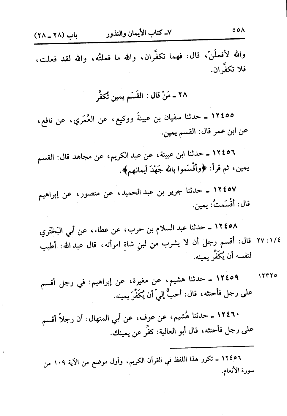 12457- حدَّثَنَا جَرِيرُ بْنُ عَبْدِ الْحَمِيدِ ، عَنْ مَنْصُورٍ ، عَنْ إبْرَاهِيمَ ، قَالَ : أَقْسَمْت يَمِينٌ.