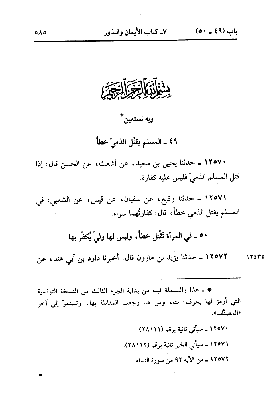 49- المسلم يقتل الذِّمِّيَّ خَطَأً.