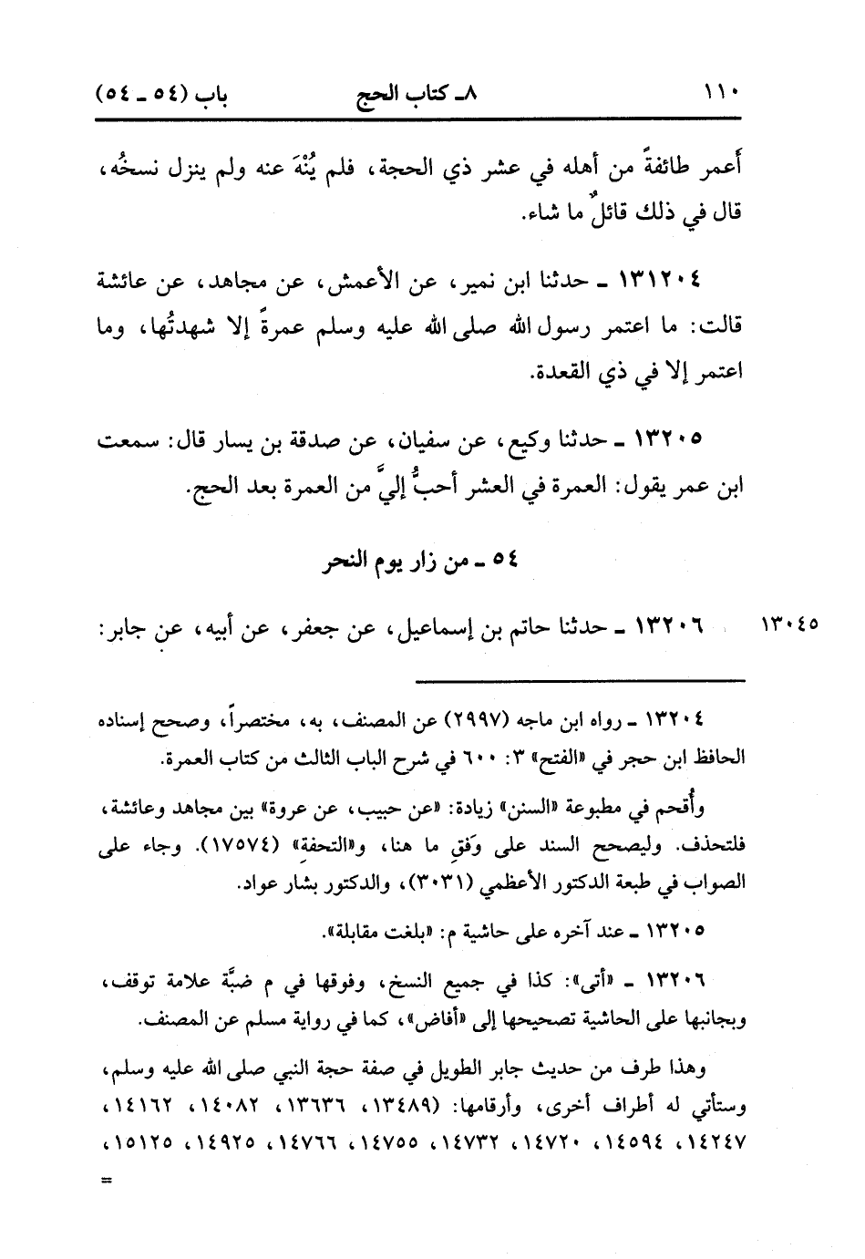 13205- حدَّثَنَا وَكِيعٌ ، عَنْ سُفْيَانَ ، عَنْ صَدَقَةَ بْنِ يَسَارٍ ، قَالَ : سَمِعْتُ ابْنَ عُمَرَ يَقُولُ : الْعُمْرَةُ فِي الْعَشْرِ أَحَبُّ إلَيَّ مِنَ الْعُمْرَةِ بَعْدَ الْحَجِّ. (4/135:1).