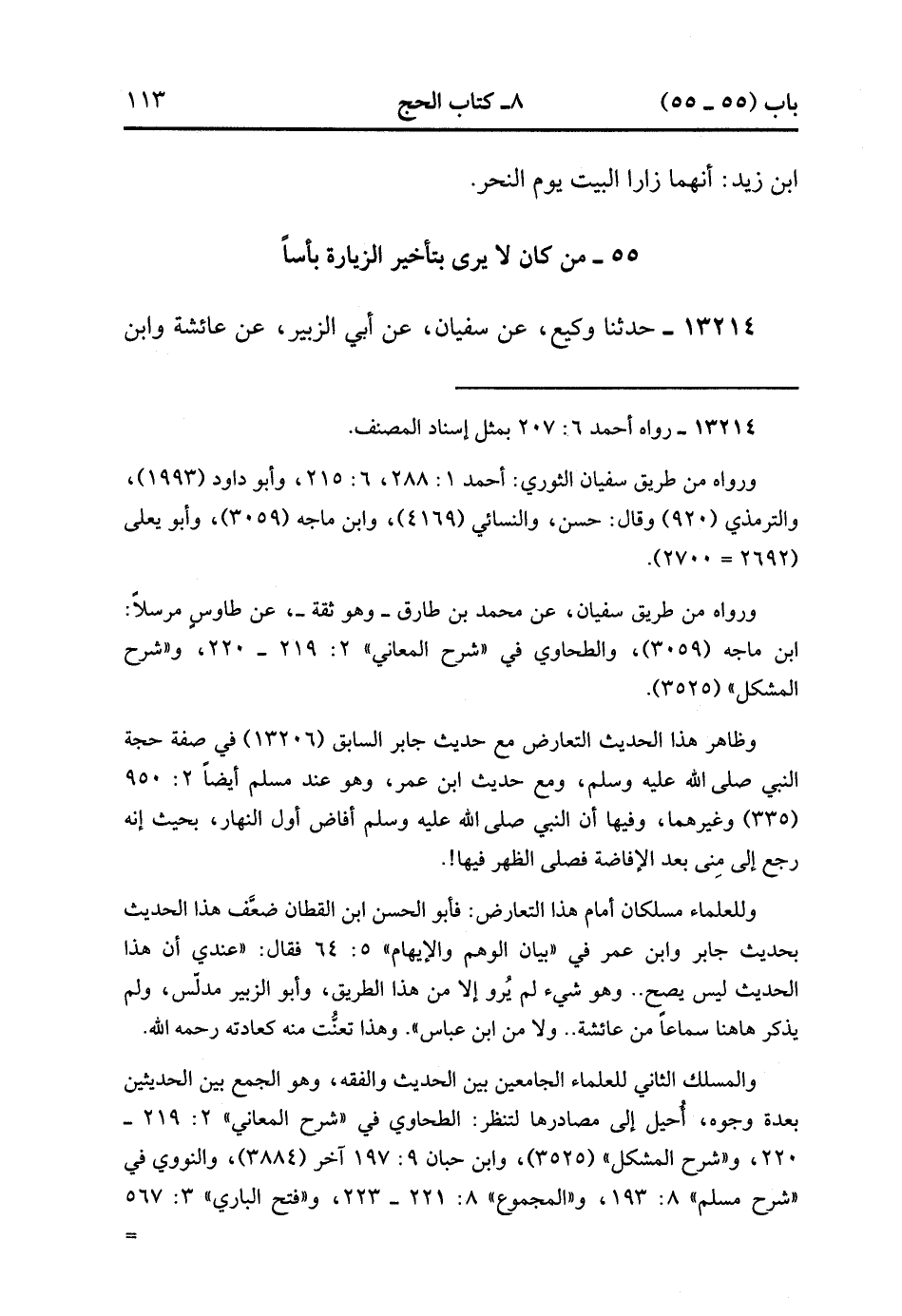 55- مَنْ كَانَ لاَ يَرَى بِتَأْخِيرِ الزِّيَارَةِ بَأْسًا.