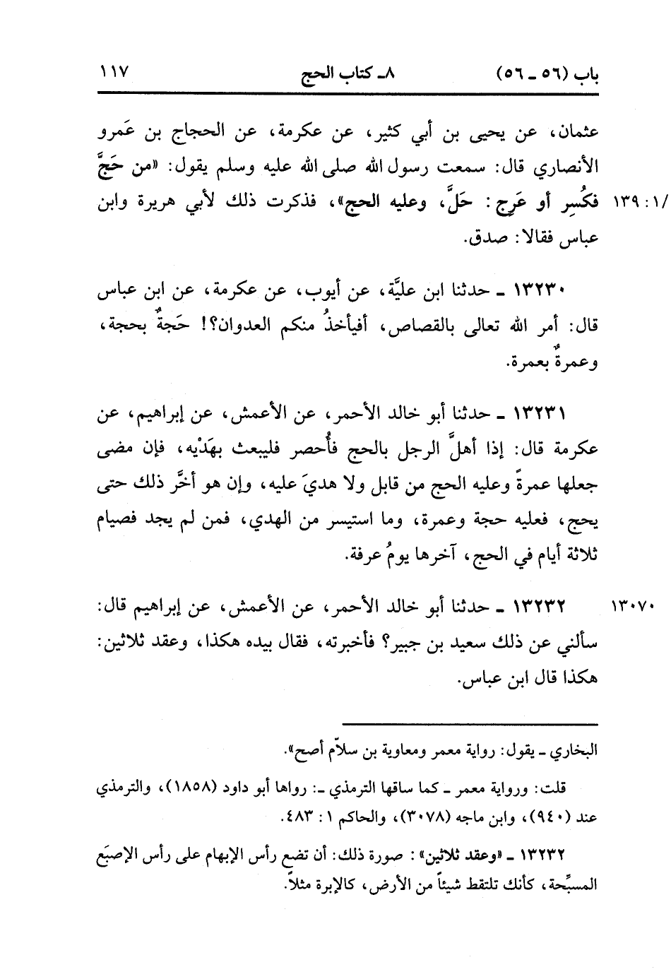 13232- حدَّثَنَا أَبُو خَالِدٍ الأَحْمَرِِ ، عَنِ الأَعْمَشِ ، عَنْ إبْرَاهِيمَ ، قَالَ : سَأَلَنِي عَنْ ذَلِكَ سَعِيدُ بْنُ جُبَيْرٍ ؟ فَأَخْبَرْتُهُ ، فَقَالَ بِيَدِهِ هَكَذَا وَعَقَدَ ثَلاَثِينَ ، هَكَذَا قَالَ ابْنُ عَبَّاسٍ. (4/139:1).