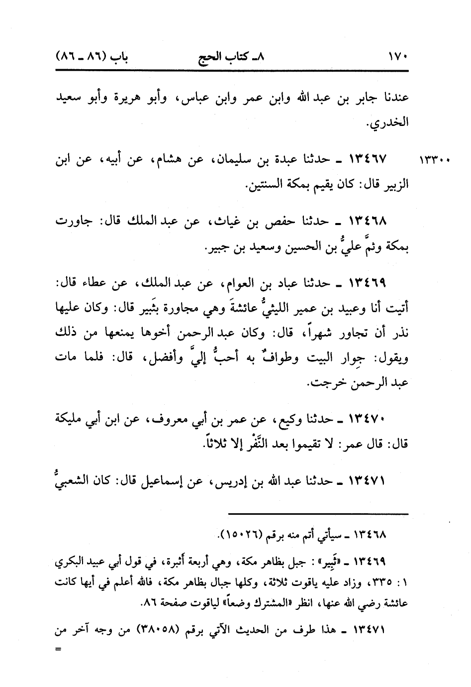 13467- حدَّثَنَا عَبْدَةُ بْنُ سُلَيْمَانَ ، عَنْ هِشَامٍ ، عَنْ أَبِيهِ ، عَنِ ابْنِ الزُّبَيْرِ ، قَالَ : كَانَ يُقِيمُ بِمَكَّةَ السَّنَتَيْنِ.