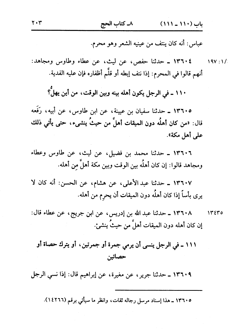 13605- حدَّثَنَا سُفْيَانُ بْنُ عُيَيْنَةَ ، عَنِ ابْنِ طَاوُوسٍ ، عَنْ أَبِيهِ ، رَفَعَهُ ، قَالَ : مَنْ كَانَ أَهْلُهُ دُونَ الْمِيقَاتَ أَهَلَّ مِنْ حَيْثُ يُنْشِئُ ، حَتَّى يَأْتِيَ ذَلِكَ عَلَى أَهْلِ مَكَّةَ.