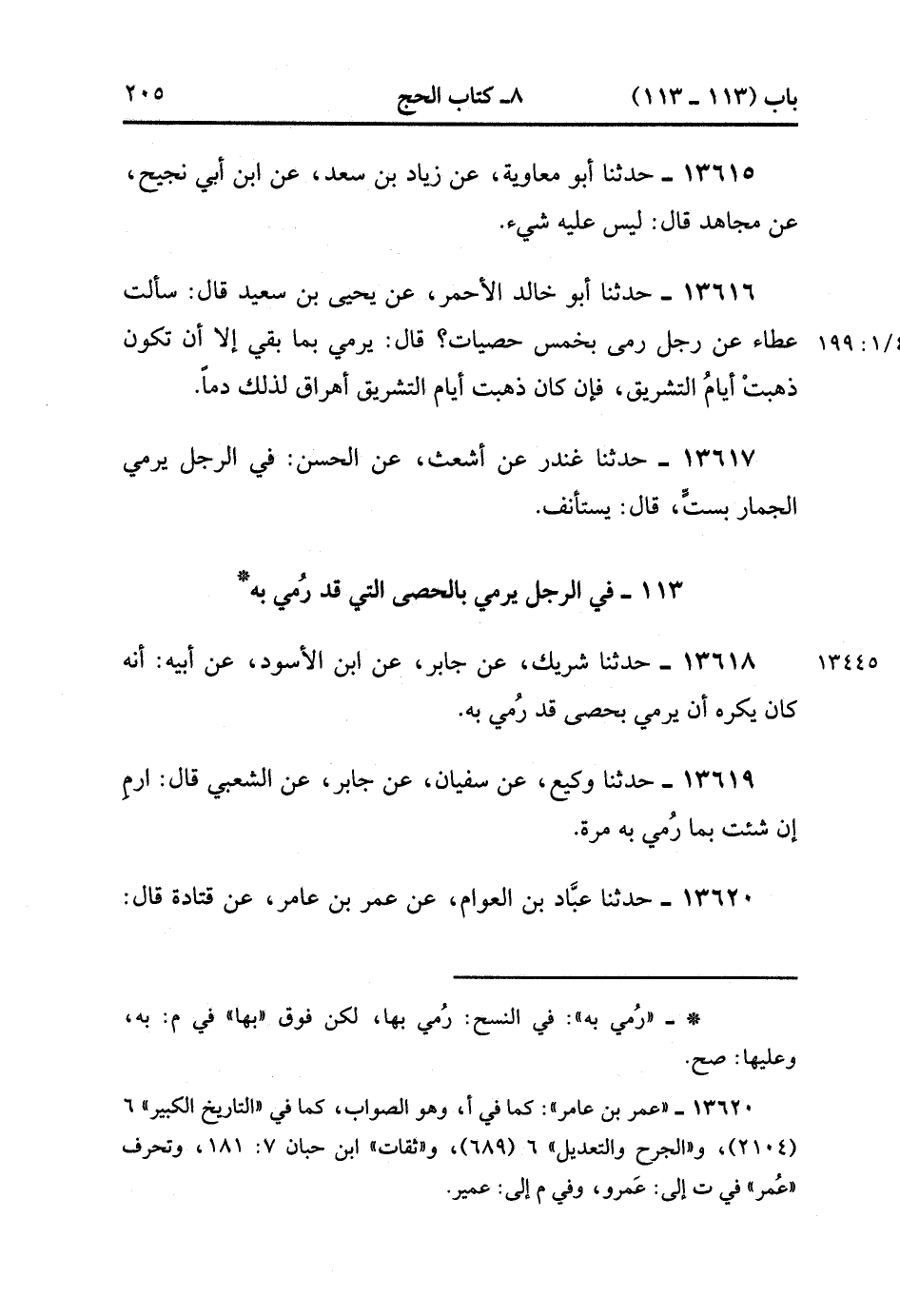 13620- حدَّثَنَا عَبَّادُ بْنُ الْعَوَّامِ ، عَنْ عُمَرَ بْنِ عَامِرٍ ، عَنْ قَتَادَةَ ، قَالَ : كَانَ يَكْرَهُ ، أَوْ يُكْرَهُ ، أَنْ يَرْمِيَ بِحَصَى بِالْجِمَارِ الَّذِي قَدْ رُمِيَ بِهِ. (4/199:1).