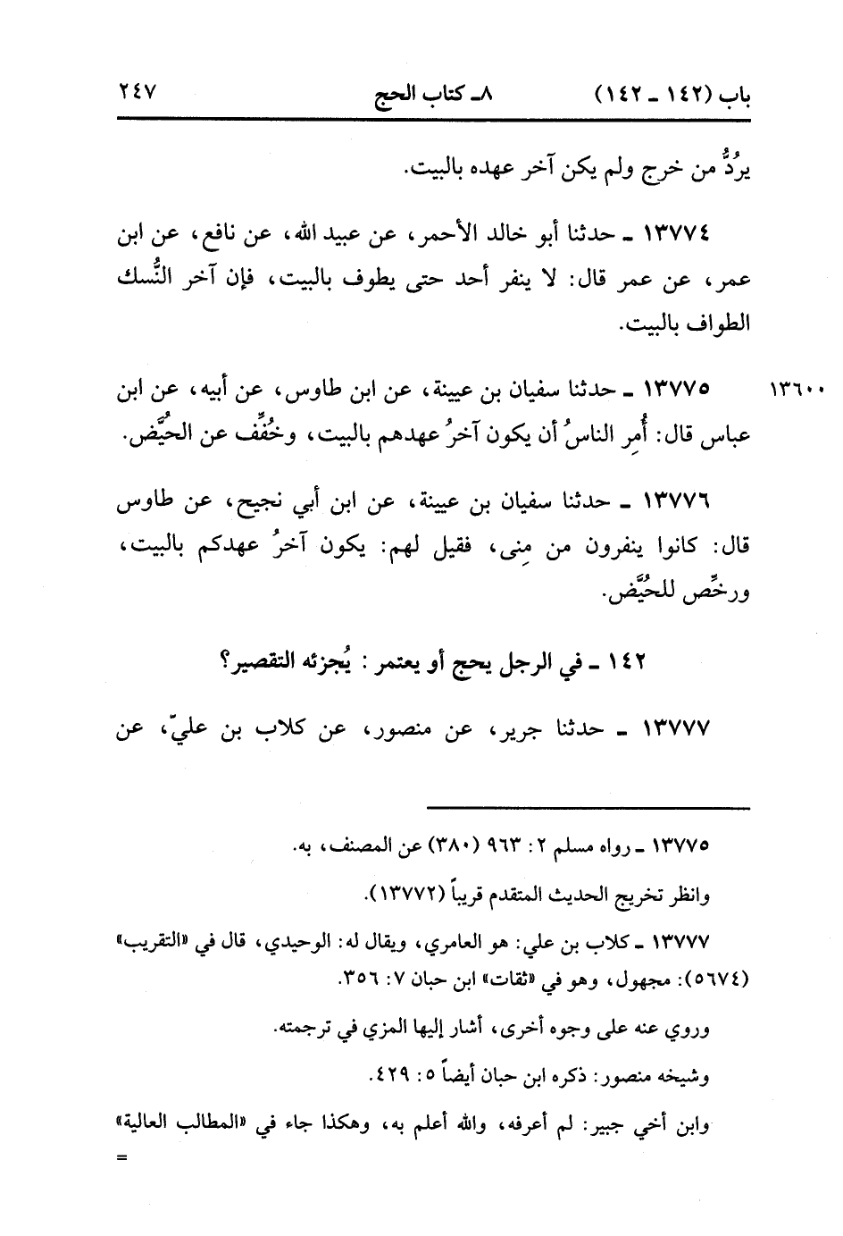 13776- حدَّثَنَا سُفْيَانُ بْنُ عُيَيْنَةَ ، عَنِ ابْنِ أَبِي نَجِيحٍ ، عَنْ طَاوُوسٍ ، قَالَ : كَانُوا يَنْفِرُونَ مِنْ مِنًى ، فَقِيلَ لَهُمْ : يَكُونُ آخِرَ عَهْدِكُمْ بِالْبَيْتِ ، وَرُخِّصَ لِلْحُيَّضِ. (4/224:1).