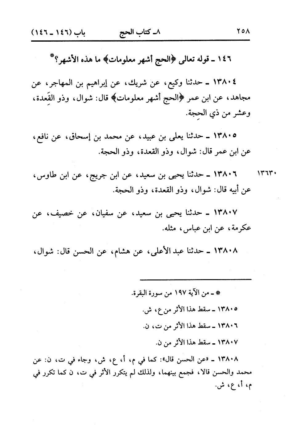 13804- حدَّثَنَا وَكِيعٌ ، عَنْ شَرِيكٍ ، عَنْ إبْرَاهِيمَ بْنِ الْمُهَاجِرِ ، عَنْ مُجَاهِدٍ ، عَنِ ابْنِ عُمَرَ ؛ {الْحَجُّ أَشْهُرٌ مَعْلُومَاتٌ} قَالَ : شَوَّالُ ، وَذُو الْقِعْدَةِ ، وَعَشْرٌ مِنْ ذِي الْحِجَّةِ.