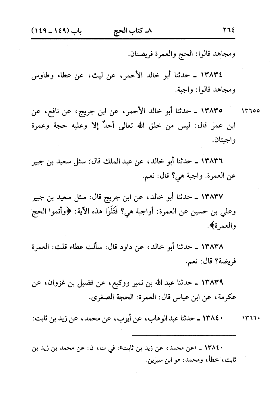 13837- حدَّثَنَا أَبُو خَالِدٍ ، عَنِ ابْنِ جُرَيْجٍ ، قَالَ : سُئِلَ سَعِيدُ بْنُ جُبَيْرٍ ، وَعَلِيُّ بْنُ حُسَيْنٍ ، عَنِ الْعُمْرَةِ ، أَوَاجِبَةٌ هِيَ ؟ فَتَلَوْا هَذِهِ الآيَةَ : {وَأَتِمُّوا الْحَجَّ وَالْعُمْرَةَ}.