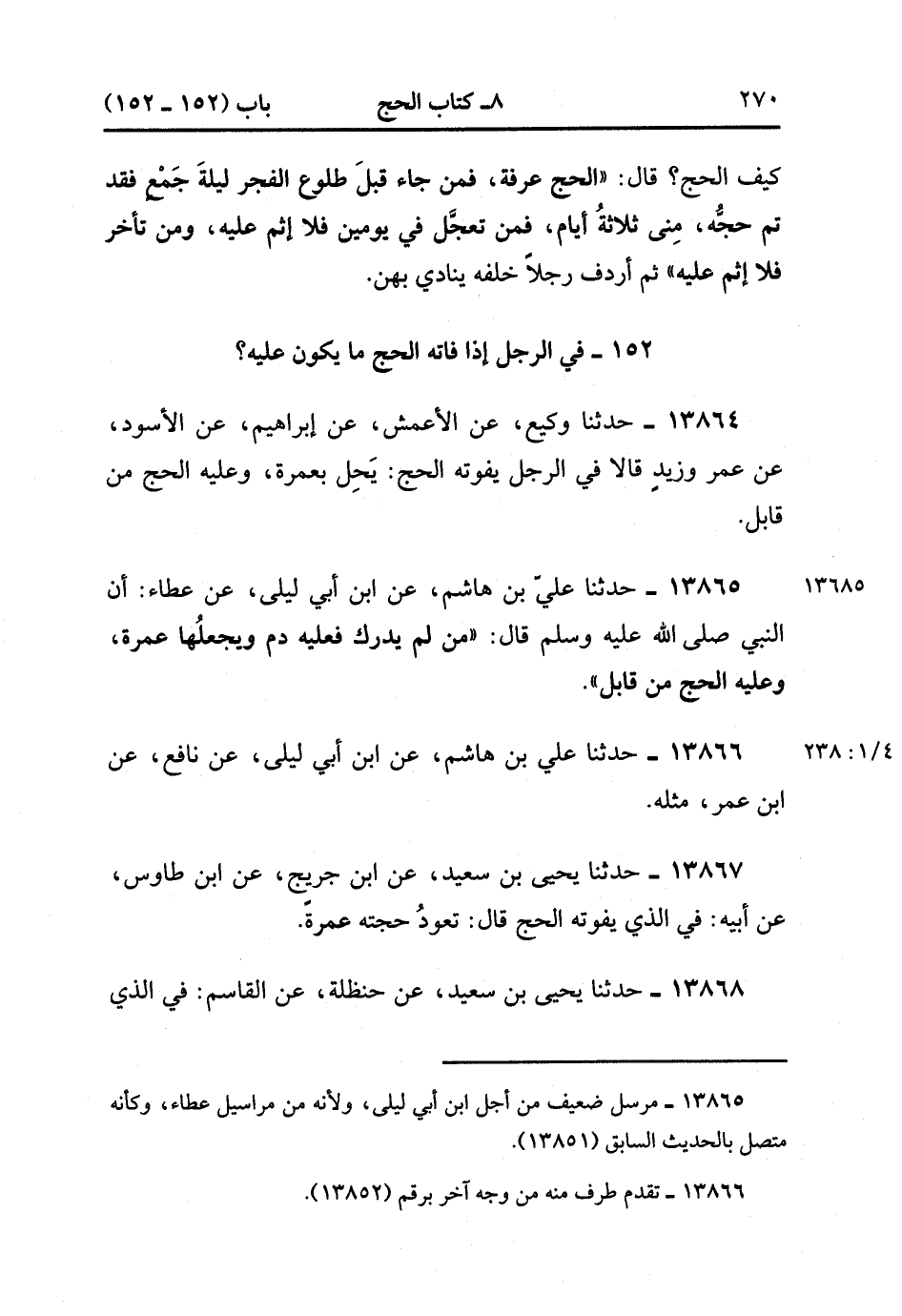 13865- حدَّثَنَا عَلِيُّ بْنُ هَاشِمٍ ، عَنِ ابْنِ أَبِي لَيْلَى ، عَنْ عَطَاءٍ ؛ أَنَّ نَبِيَّ اللهِ صَلَّى الله عَلَيْهِ وَسَلَّمَ ، قَالَ : مَنْ لَمْ يُدْرِكْ فَعَلَيْهِ دَمٌ ، وَيَجْعَلُهَا عُمْرَةً ، وَعَلَيْهِ الْحَجُّ مِنْ قَابِلٍ. (4/237:1)