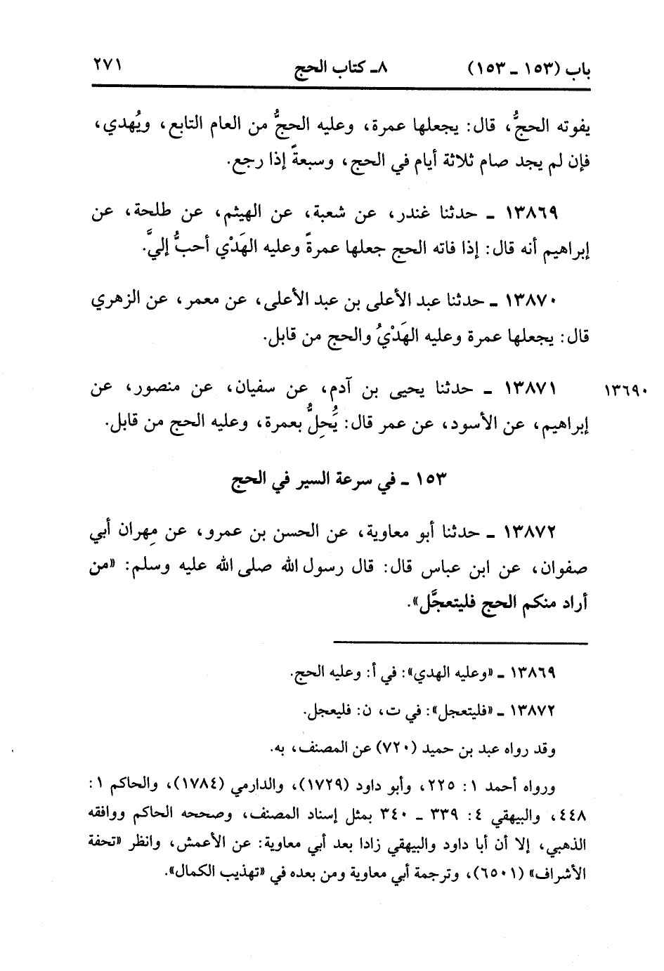 153- فِي سُرْعَةِ السَّيْرِ فِي الْحَجِّ.