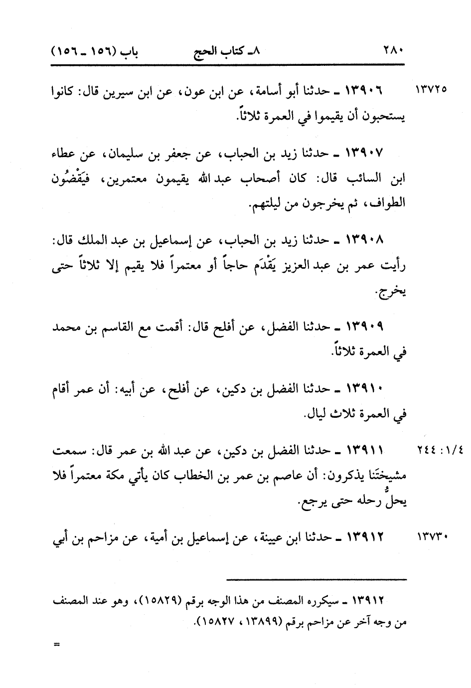 13910- حدَّثَنَا الْفَضْلُ بْنُ دُكَيْنٍ ، عَنْ أَفْلَحَ ، عَنْ أَبِيهِ ؛ أَنَّ عُمَرَ أَقَامَ فِي الْعُمْرَةِ ثَلاَث ليال. (4/243:1)