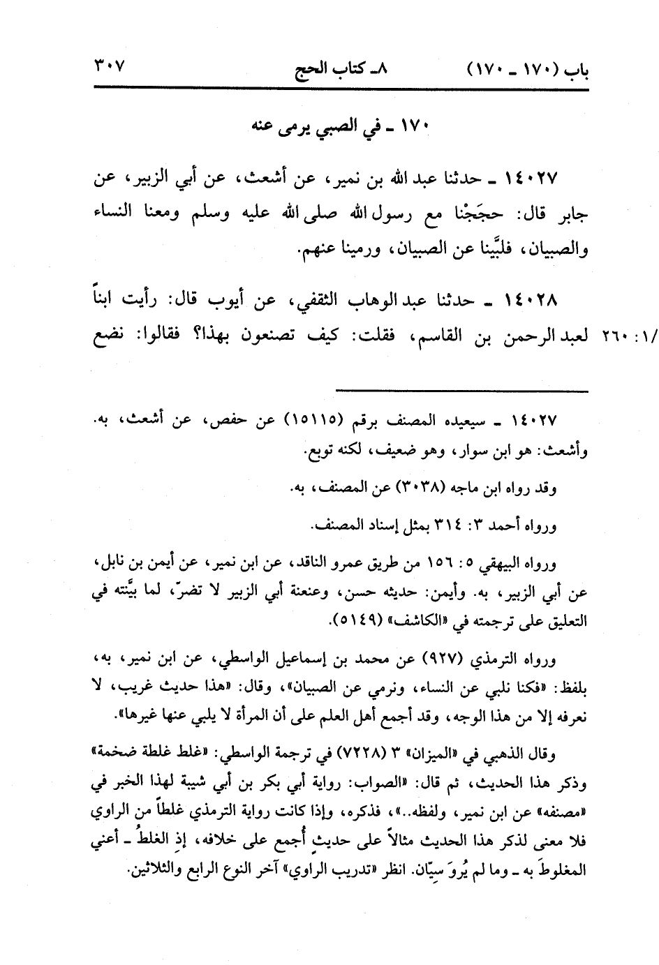 14027- حدَّثَنَا عَبْدُ اللهِ بْنُ نُمَيْرٍ ، عَنْ أَشْعَثَ ، عَنْ أَبِي الزُّبَيْرِ ، عَنْ جَابِرٍ ، قَالَ : حجَجْنَا مَعَ رَسُولِ اللهِ صَلَّى الله عَلَيْهِ وَسَلَّمَ وَمَعَنَا النِّسَاءُ وَالصِّبْيَانُ ، فَلَبَّيْنَا عَنِ الصِّبْيَانِ وَرَمَيْنَا عَنْهُمْ.