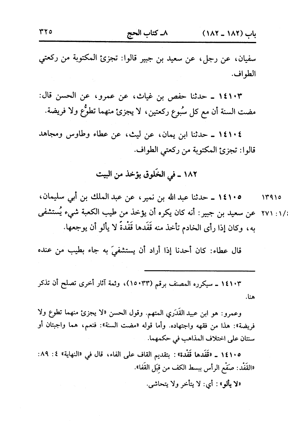 14103- حدَّثَنَا حَفْصُ بْنُ غِيَاثٍ ، عَنْ عَمْرٍو ، عَنِ الْحَسَنِ ، قَالَ : مَضَتِ السُّنَّةُ أَنَّ مَعَ كُلِّ سُبُوعٍ رَكْعَتَيْنِ ، لاَ يُجْزِئُ مِنْهُمَا تَطَوُّعٌ ، وَلاَ فَرِيضَةٌ.