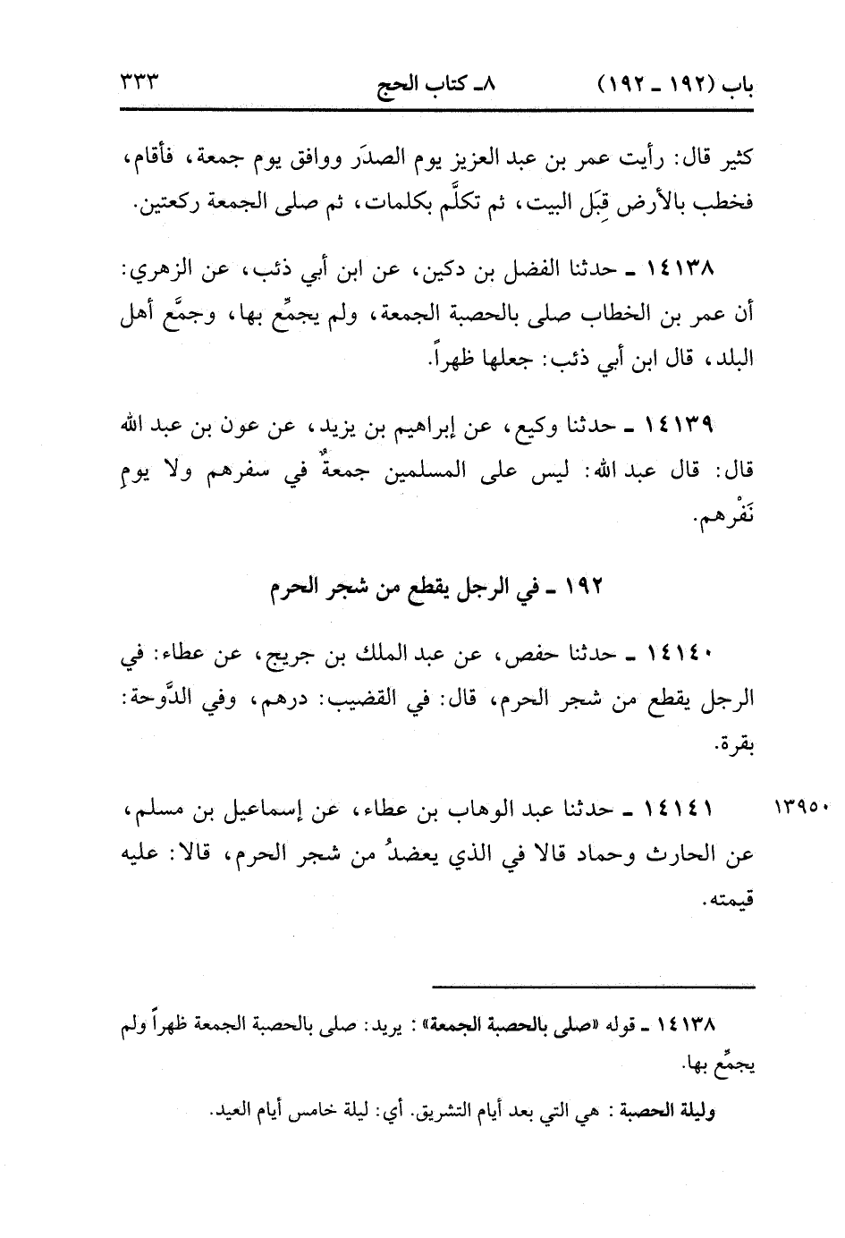 14138- حدَّثَنَا الْفَضْلُ بْنُ دُكَيْنٍ ، عَنِ ابْنِ أَبِي ذِئْبٍ ، عَنِ الزُّهْرِيِّ ؛ أَنَّ عُمَرَ بْنَ الْخَطَّابِ صَلَّى بِالْحَصْبَةِ الْجُمُعَةَ ، وَلَمْ يَجْمِّعْ بِهَا ، وَجَمَّعَ أَهْلُ الْبَلَدِ ، قَالَ ابْنُ أَبِي ذِئْبٍ : جْعَلْهَا ظُهْرًا.