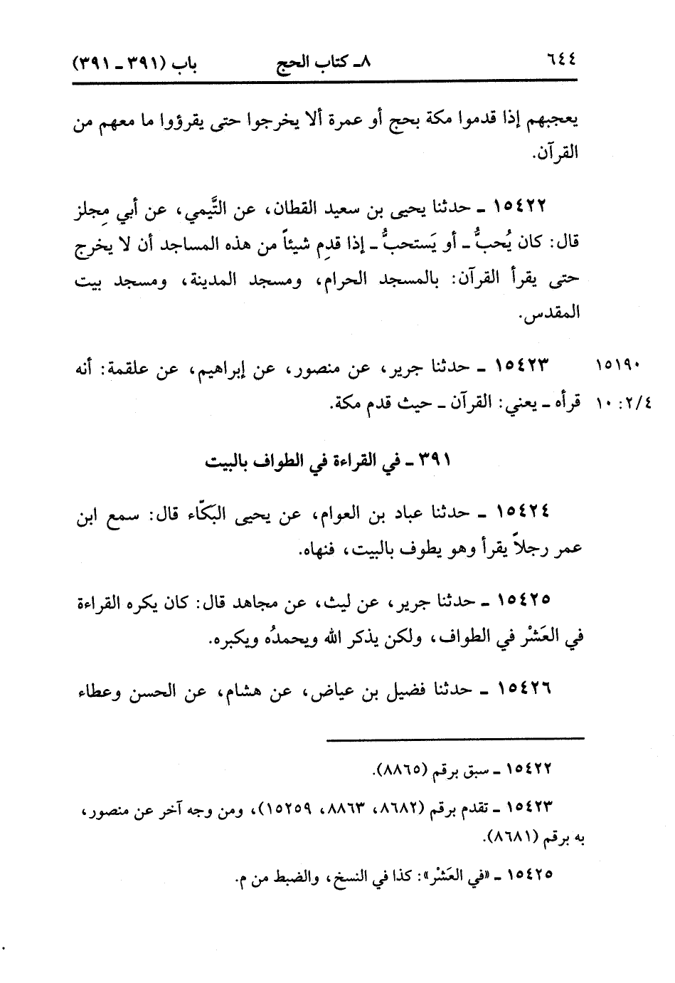 391- في القراءة فِي الطَّوَافِ بِالْبَيْتِ.
