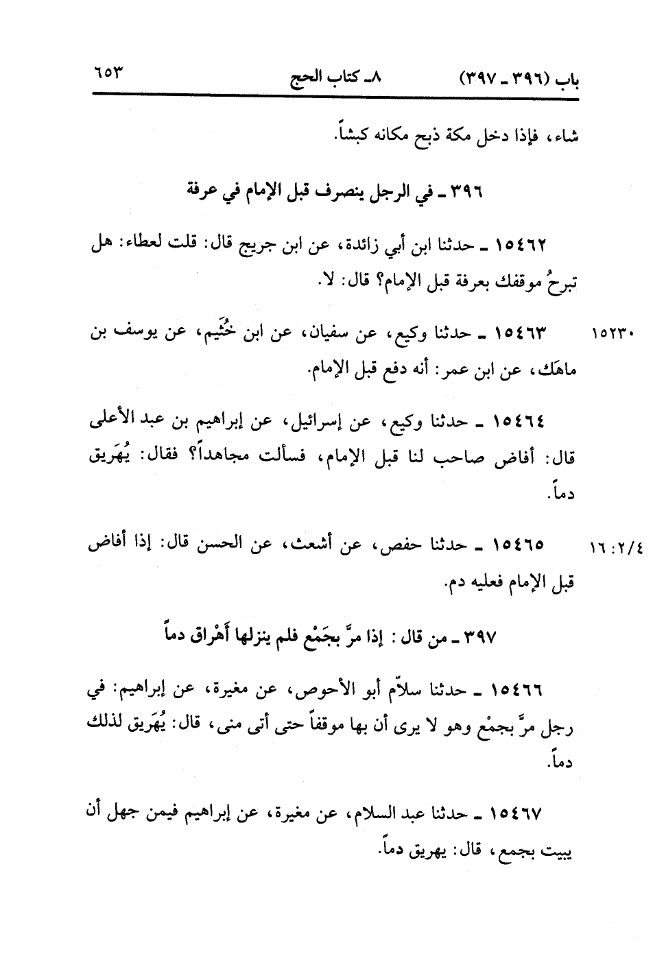15464- حَدَّثَنَا وَكِيعٌ , عَنْ إسْرَائِيلَ , عَنْ إبْرَاهِيمَ بْنِ عَبْدِ الأَعْلَى ، قَالَ : أَفَاضَ صَاحِبٌ لَنَا قَبْلَ الإِمَامِ فَسَأَلْت مُجَاهِدًا ، فَقَالَ : يُهَرِيقُ دَمًا. (4/15:2)