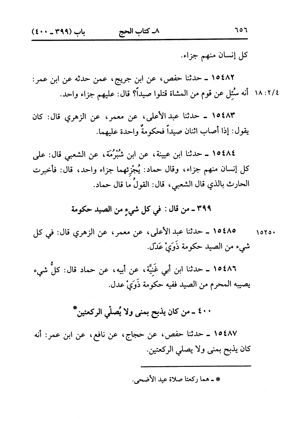 400- من كَانَ يَذْبَحُ بِمِنًى وَلاَ يُصَلِّي الرَّكْعَتَيْنِ.