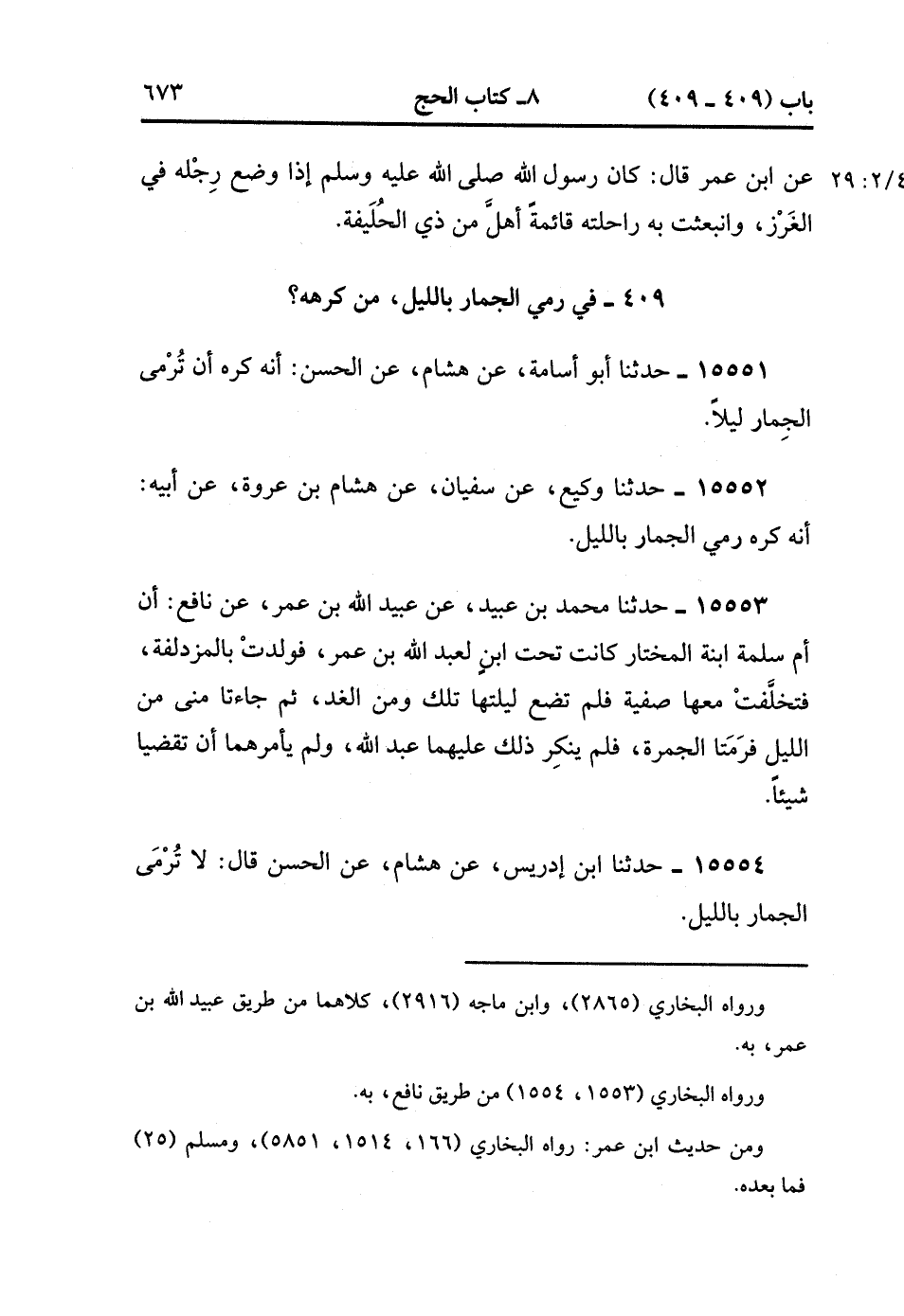 409- في رَمْيَ الْجِمَارَ بِاللَّيْلِ مَنْ كَرِهَهُ.