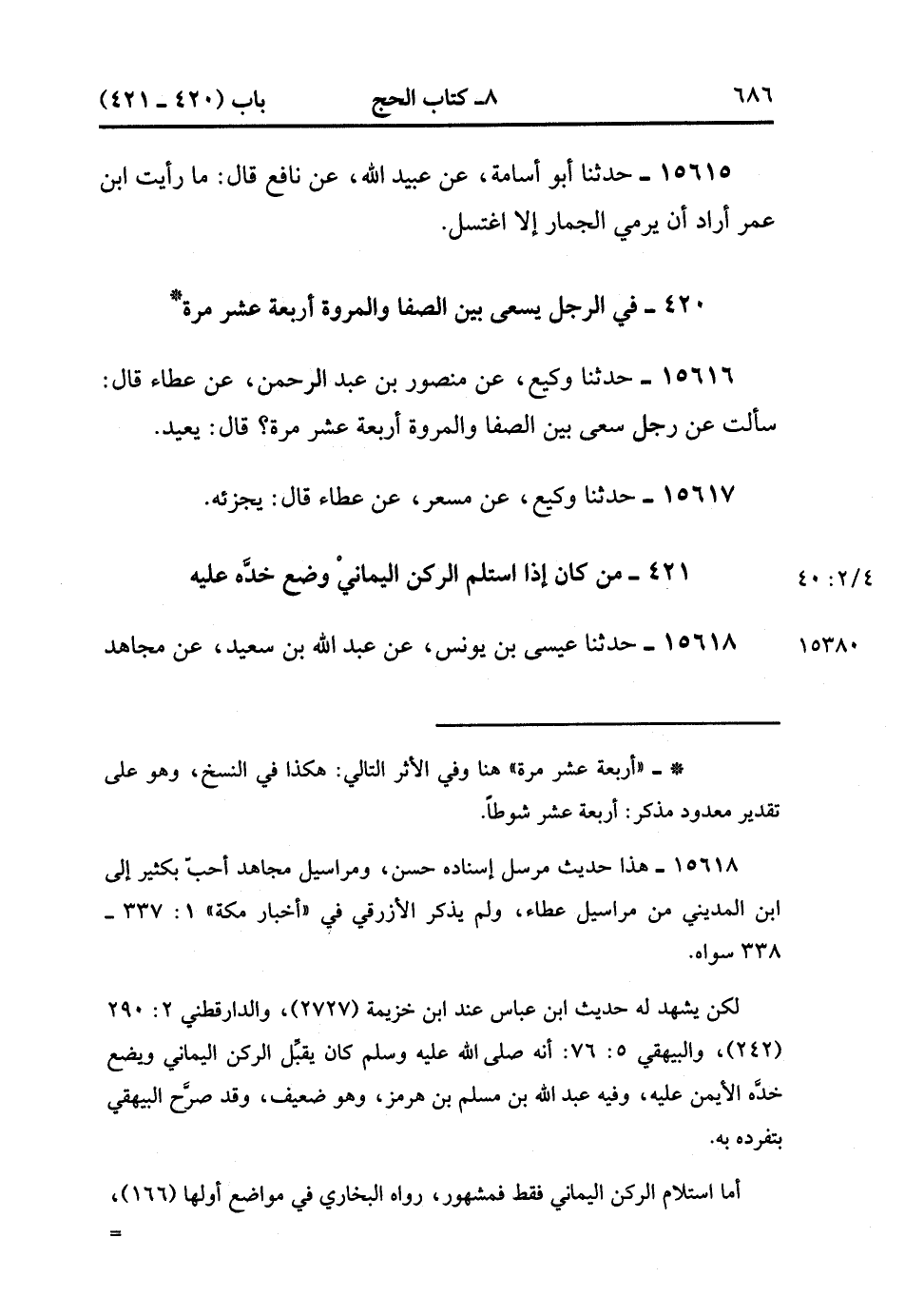 420- في الرجل يَسْعَى بَيْنَ الصَّفَا وَالْمَرْوَةِ أَرْبَعَةَ عَشَرَ مَرَّةً.