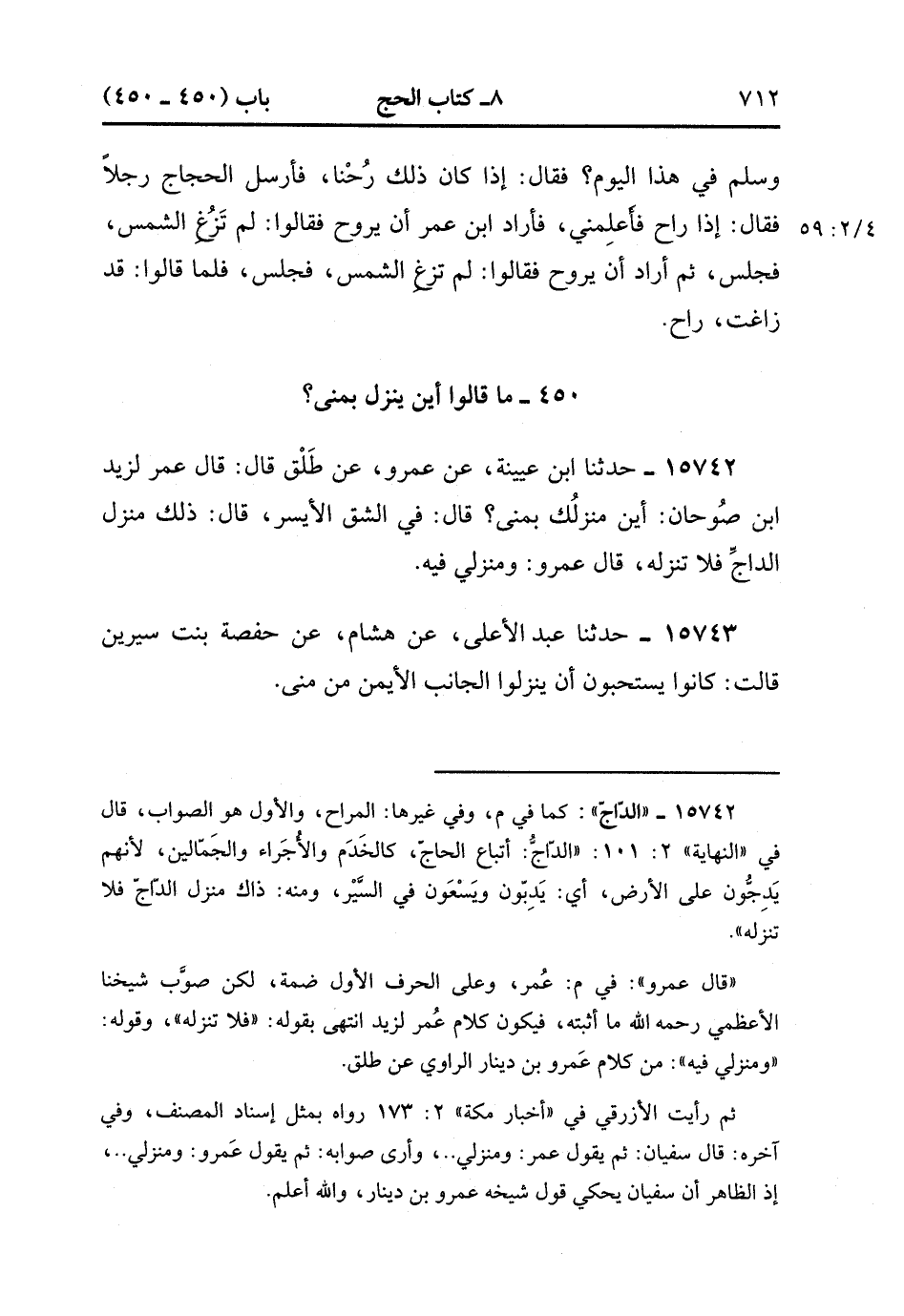15743- حَدَّثَنَا عَبْدُ الأَعْلَى , عَنْ هِشَامٍ , عَنْ حَفْصَةَ بِنْتِ سِيرِينَ ، قَالَتْ : كَانُوا يَسْتَحِبُّونَ أَنْ يَنْزِلُوا الْجَانِبَ الأَيْمَنَ مِنْ مِنًى. (4/59:2).