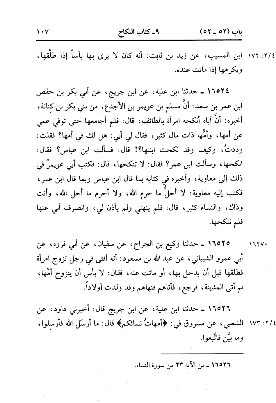 16526- حَدَّثَنَا ابْنُ عُلَيَّةَ , عَنِ ابن جريج قَالَ : أخبرني دَاوُدَ , عَنِ الشَّعْبِيِّ , عَنْ مَسْرُوقٍ فِي {أُمَّهَاتِ نِسَائِكُمْ} قَالَ : مَا أَرْسَلَ اللَّهُ فَأَرْسِلُوا ، وَمَا بَيَّنَ فَاتَّبِعُوا. (4/172:2).