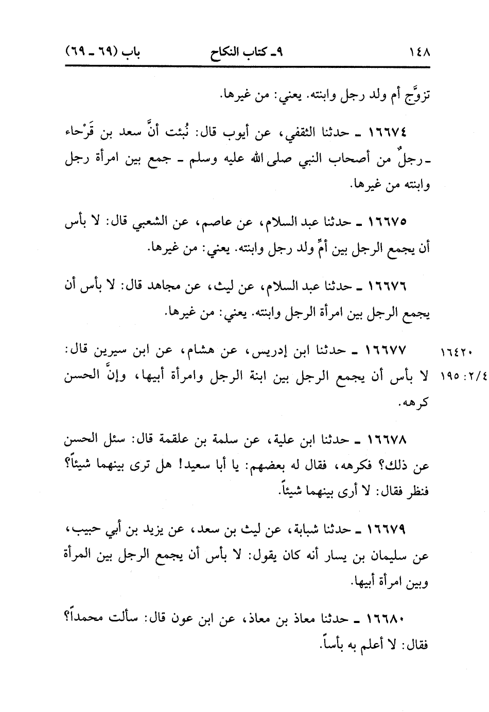 16674- حَدَّثَنَا الثَّقَفِيُّ , عَنْ أَيُّوبَ قَالَ : نُبِّئْت , عَنْ سَعْدِ بْنِ قَرْحَاء رَجُلٌ مِنْ أَصْحَابِ النَّبِيِّ صَلَّى الله عَلَيْهِ وَسَلَّمَ جَمَعَ بَيْنَ امْرَأَةِ رَجُلٍ وَابْنَتِهِ مِنْ غَيْرِهَا.