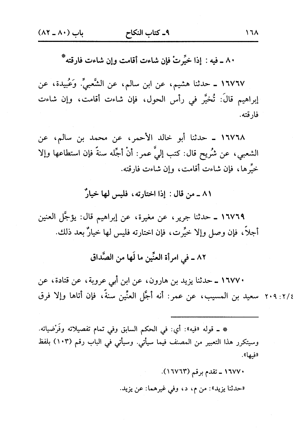 80- فيه إذا خيرت فَإِنْ شَاءَتْ أَقَامَتْ ، وَإِنْ شَاءَتْ فَارَقَتْهُ.