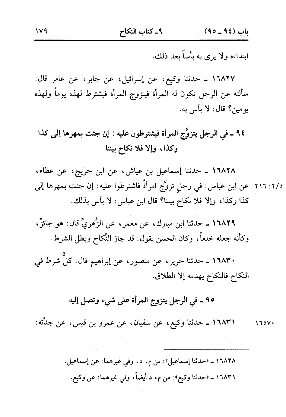 16830- حَدَّثَنَا جَرِيرٌ , عَنْ مَنْصُورٍ , عَنْ إبْرَاهِيمَ قَالَ : كُلُّ شَرْطٍ فِي النِّكَاحِ فَالنِّكَاحُ يَهْدِمُهُ إلاَّ الطَّلاَقَ.