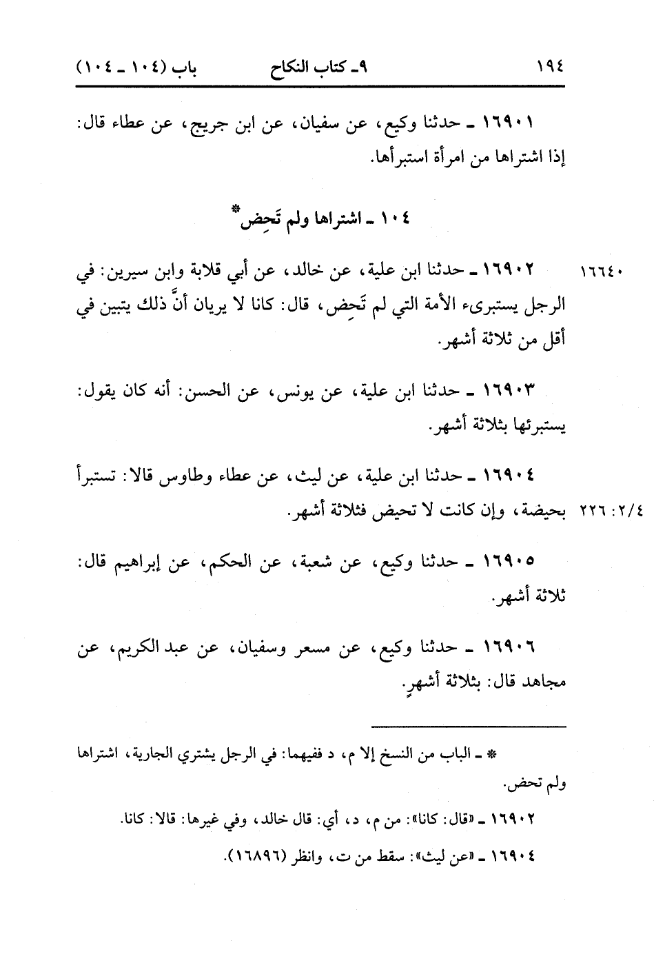 16902- حَدَّثَنَا ابْنُ عُلَيَّةَ , عَنْ خَالِدٍ , عَنْ أَبِي قِلاَبَةَ ، وَابْنِ سِيرِينَ فِي الرَّجُلِ يستبرئ الأَمَةَ الَّتِي لَمْ تَحِضْ قَال : كَانَا لاَ يَرَيَانِ أَنَّ ذَلِكَ يَتَبَيَّنُ فِي أَقَلَّ مِنْ ثَلاَثَةِ أَشْهُرٍ.