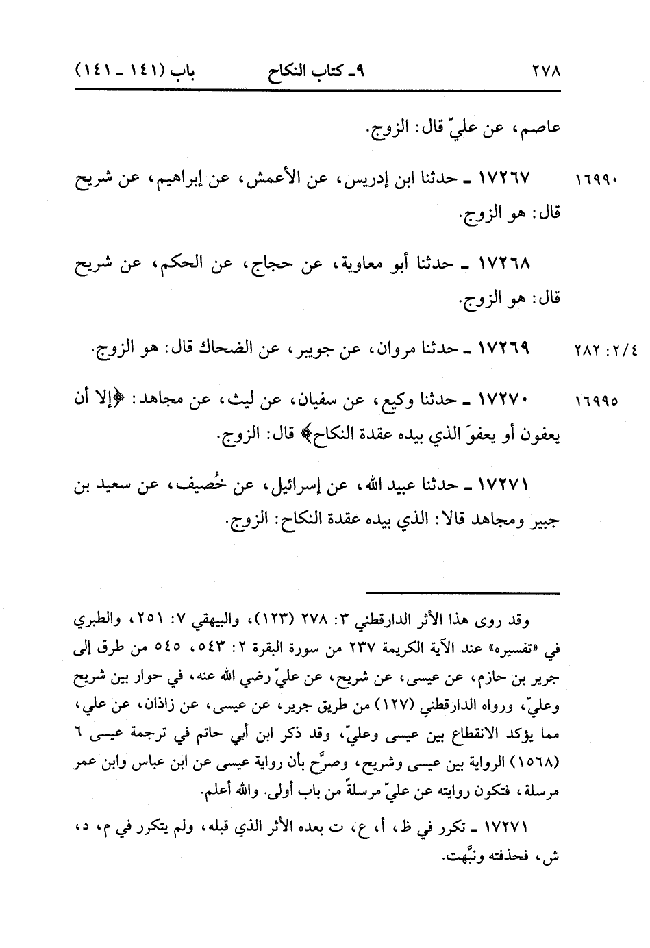 17271- حَدَّثَنَا عُبَيْدُ اللهِ , عَنْ إسْرَائِيلَ , عَنْ خُصَيْفٍ , عَنْ سَعِيدِ بْنِ جُبَيْرٍ ، وَمُجَاهِدٍ قَالاَ : {الَّذِي بِيَدِهِ عُقْدَةُ النِّكَاحِ} الزَّوْجُ. (4/282:2).