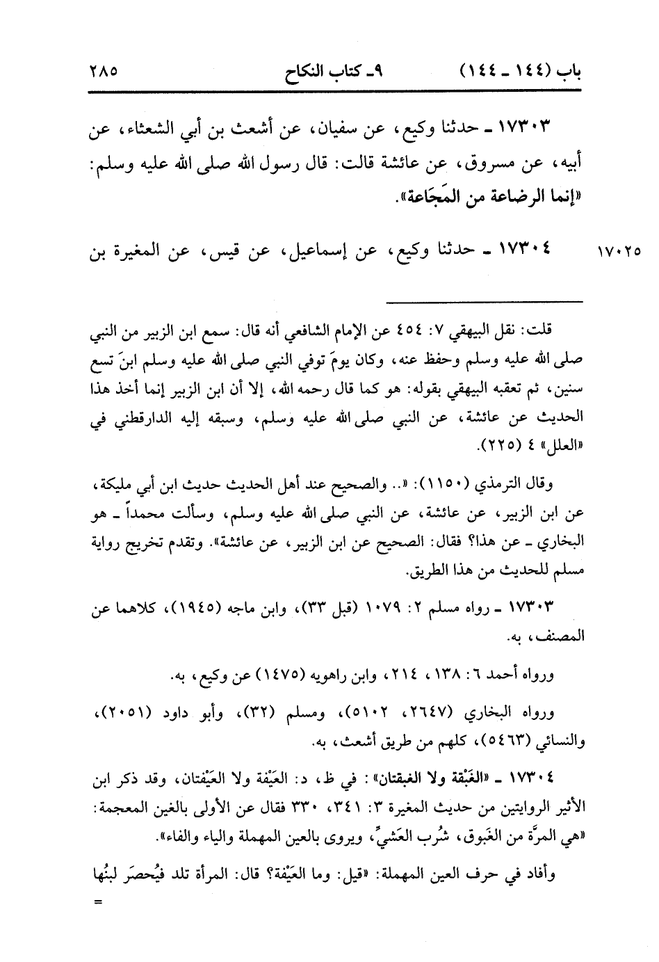 17304- حَدَّثَنَا وَكِيعٌ , عَنْ إسْمَاعِيلَ , عَنْ قَيْسٍ , عَنِ الْمُغِيرَةِ بْنِ شُعْبَةَ قَالَ : لاَ تُحَرِّمُ الغبقة وَلاَ الْغَبْقَتَانِ. (4/285:2).
