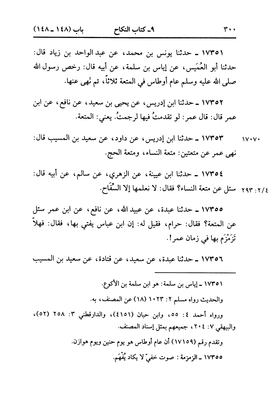 17351- حَدَّثَنَا يُونُسُ بْنُ مُحَمَّدٍ , عَنْ عَبْدِ الْوَاحِدِ بْنِ زِيَادٍ , قَالَ : حدَّثَنَا أَبُو الْعُمَيْسِ , عَنْ إيَاسِ بْنِ سَلَمَةَ , عَنْ أَبِيهِ قَالَ : رَخَّصَ رَسُولُ اللهِ صَلَّى الله عَلَيْهِ وَسَلَّمَ عَامَ أَوْطَاسٍ فِي الْمُتْعَةِ ثَلاَثًا ثُمَّ نَهَى عَنْهَا.