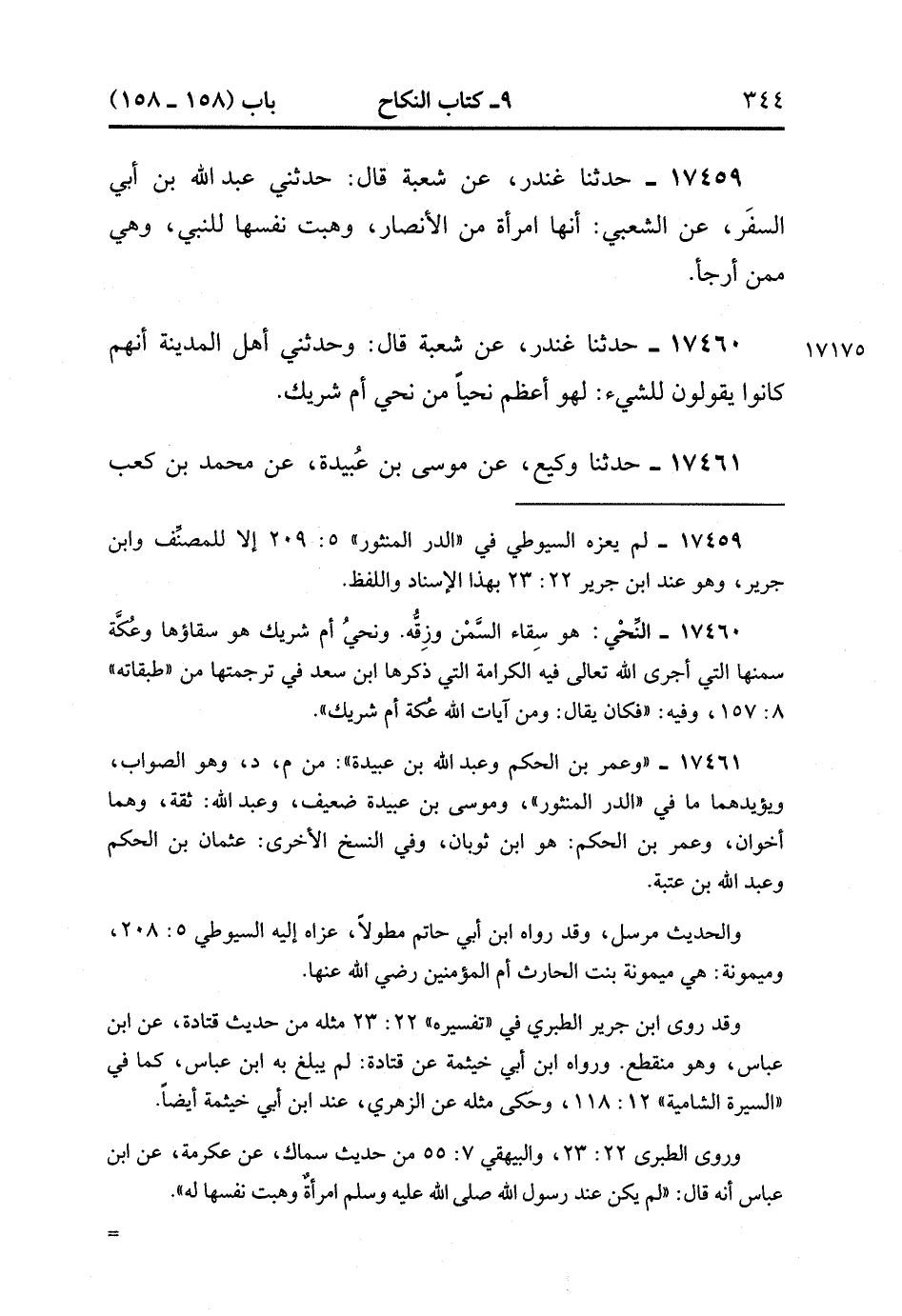 17459- حَدَّثَنَا غُنْدَرٌ , عَنْ شُعْبَةَ ، قَالَ : حَدَّثَنِي عَبْدُ اللهِ بْنُ أَبِي السَّفَرِ , عَنِ الشَّعْبِيِّ أَنَّهَا امْرَأَةٌ مِنَ الأَنْصَارِ وَهَبَتْ نَفْسَهَا لِلنَّبِيِّ وَهِيَ مِمَّنْ أَرْجَأَ. (4/315:2)