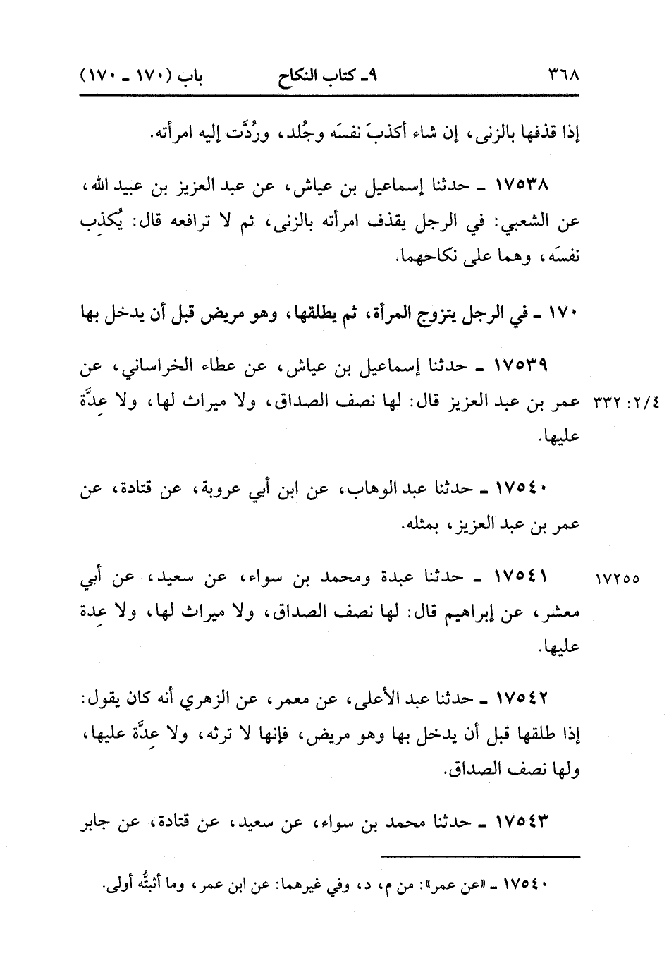 17540- حَدَّثَنَا عَبْدُ الْوَهَّابِ , عَنِ ابْنِ أَبِي عَرُوبَةَ , عَنْ قَتَادَةَ , عَنْ عُمَرَ بْنِ عَبْدِ الْعَزِيزِ بِمِثْلِهِ.