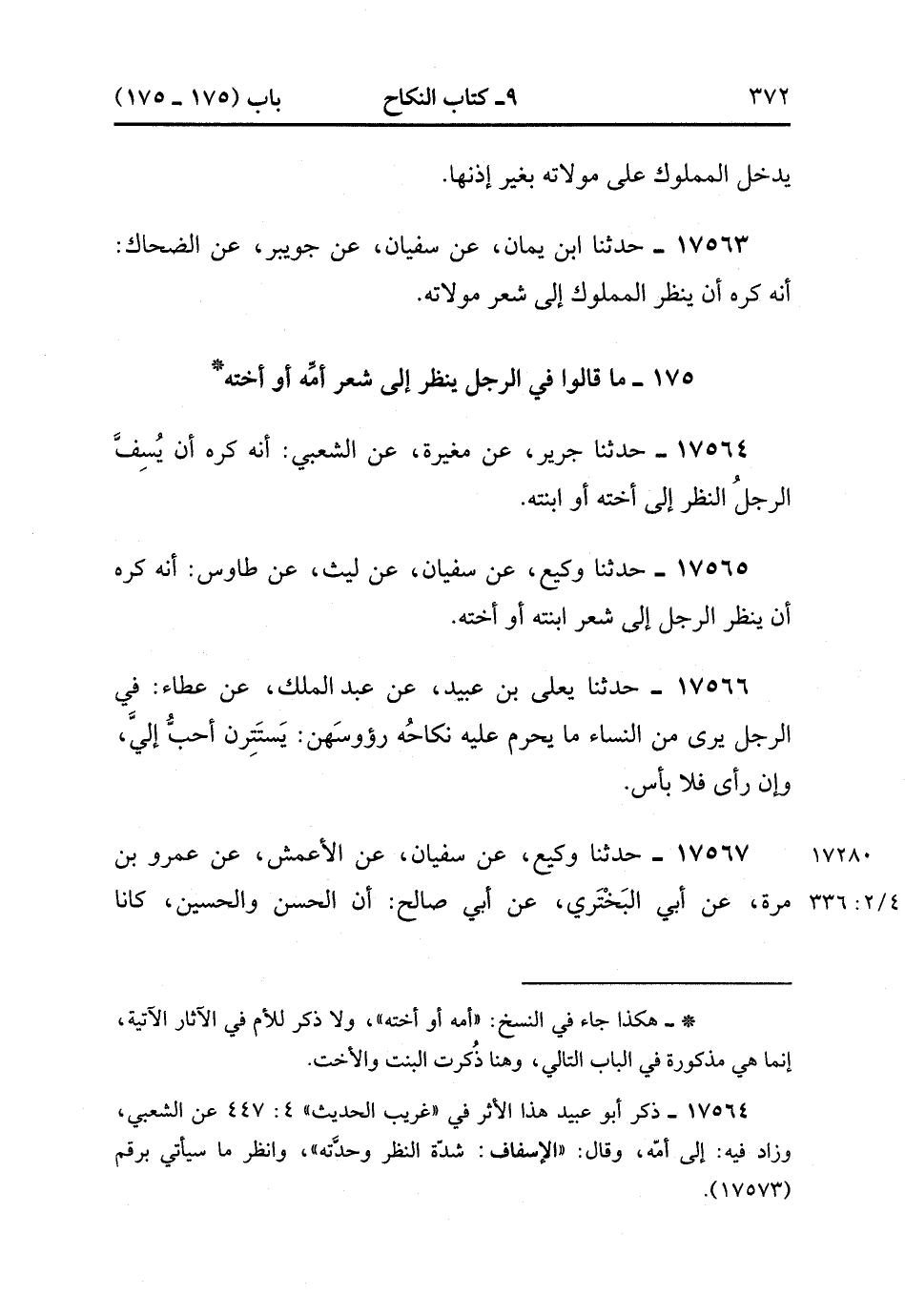 175 - مَا قَالُوا فِي الرَّجُلِ يَنْظُرُ إلَى شَعْرِ أمه أو أُخْتِهِ ؟.