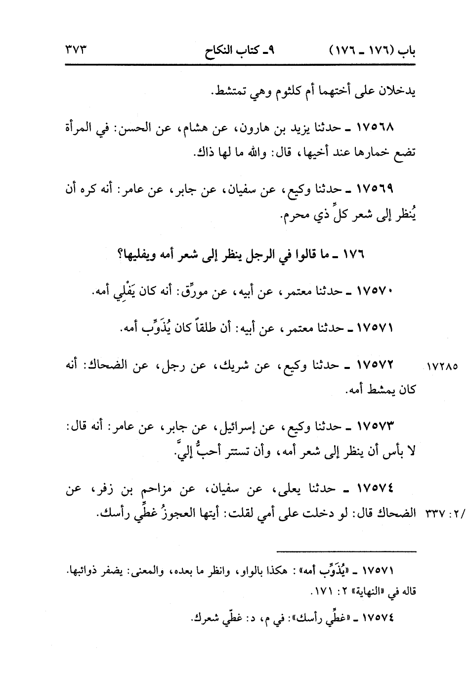 176 - مَا قَالُوا فِي الرَّجُلِ يَنْظُرُ إلَى شَعْرِ أُمِّهِ وَيُفَلِّيهَا ؟.