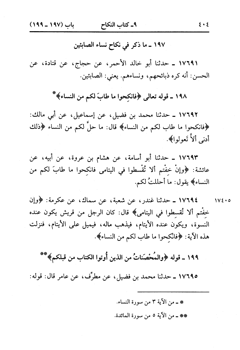 197 - مَا ذُكِرَ فِي نِكَاحِ نِسَاءِ الصَّابِئِينَ.