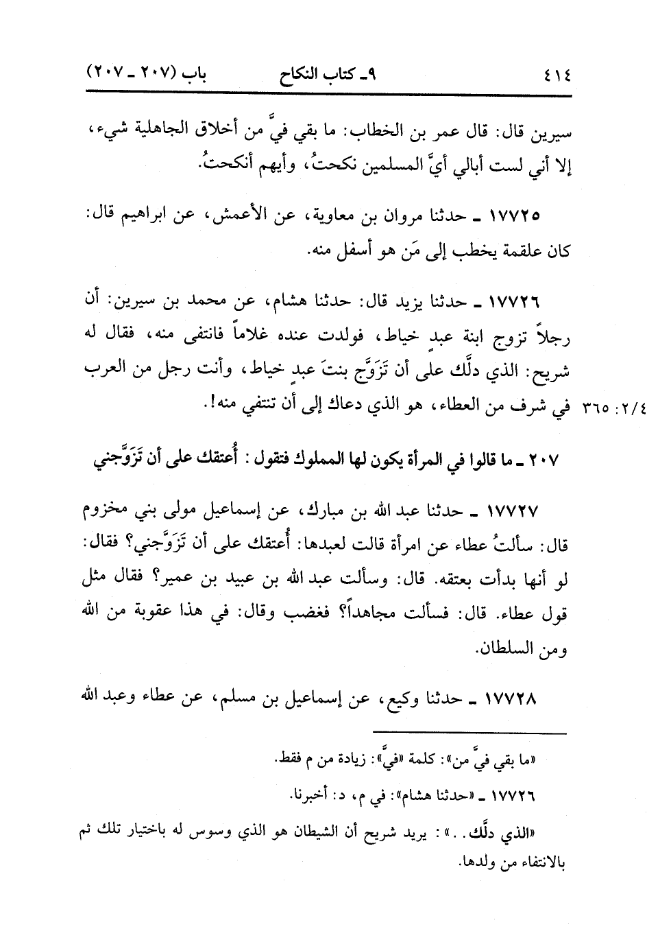 17727- حَدَّثَنَا عَبْدُ اللهِ بِنُ مُبَارِكٍ , عَنْ إِسْمَاعِيلَ مَوْلَى بَنِي مَخْزُوْمٍ قَالَ : سَأَلْتُ عَطَاءَ عَنِ امْرَأَةٍ قَالَتْ لِعَبْدِهَا : أُعْتِقَكَ عَلَى أَنْ تَزَوَّجَنِي فَقَالَ : لَوْ أَنَّهَا بَدَأَتْ يَعْتِقُهُ ! قَالَ : وَسَأَلْتُ عَبْدَ اللهِ بِنِ عُبَيْدِ بِنِ عُمَيْرٍ فَقَالَ مِثْلَ قَوْلِ عَطَاءٍ ، قَالَ : فَسَأَلْتُ مُجَاهِدَاً فغَضِبَ وَقَالَ : فِي هَذِهِ عُقُوْبَةٌ مِنَ اللهِ وَمِنَ السُّلْطَانِ.