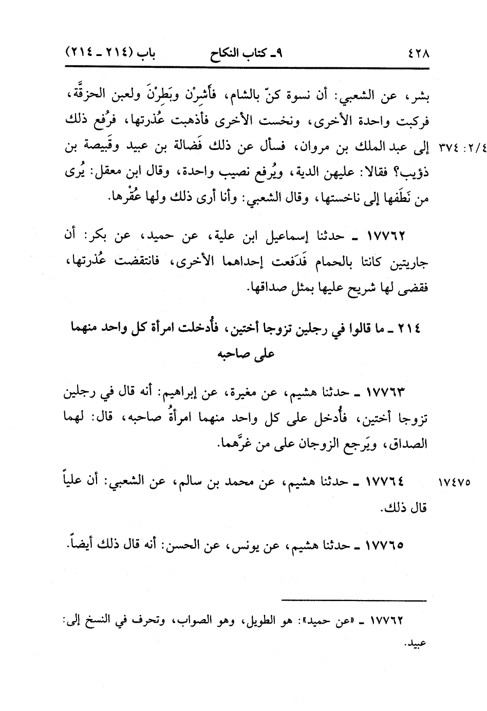 17764- حَدَّثَنَا هُشَيْمٌ , عَنْ مُحَمَّدِ بْنِ سَالِمٍ , عَنِ الشَّعْبِيِّ أَنَّ عَلِيًّا قَالَ ذَلِكَ.