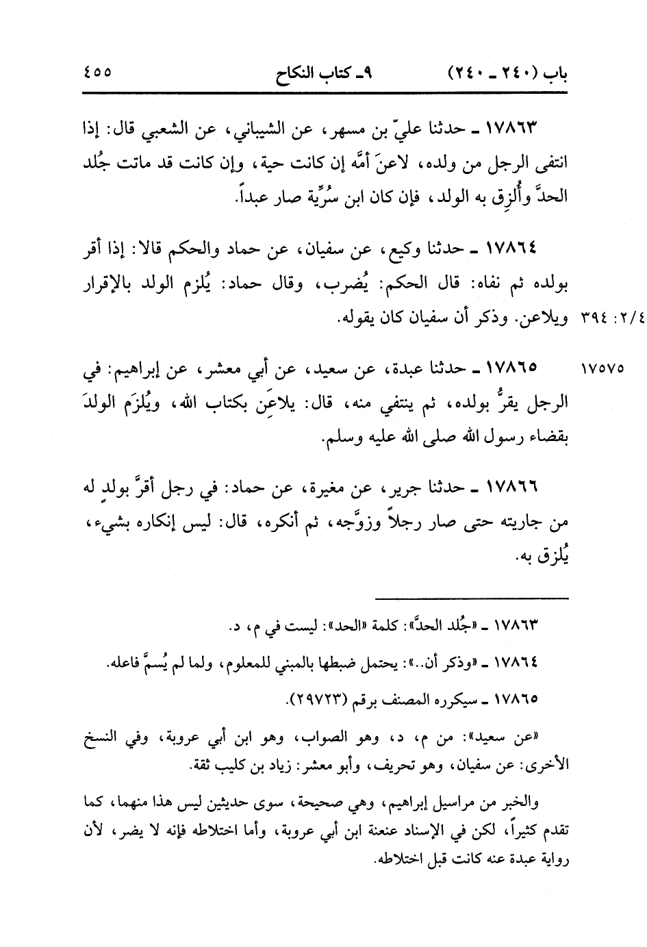 17864- حَدَّثَنَا وَكِيعٌ , عَنْ سُفْيَانَ , عَنْ حَمَّادٍ وَالْحَكَمِ قَالاَ : إذَا أَقَرَّ بِوَلَدِهِ ثُمَّ نَفَاهُ قَالَ الْحَكَمُ : يُضْرَبُ وَقَالَ حَمَّادٌ : يَلْزَمُ الْوَلَدُ بِالإِقْرَارِ وَيُلاَعِنُ وَذَكَرَ أَنَّ سُفْيَانَ كَانَ يَقُولُهُ. (4/393:2)