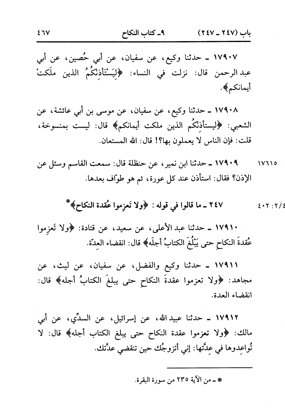 247 - مَا قَالُوا فِي قَوْلِهِ : {وَلاَ تَعْزِمُوا عُقْدَةَ النِّكَاحِ}.