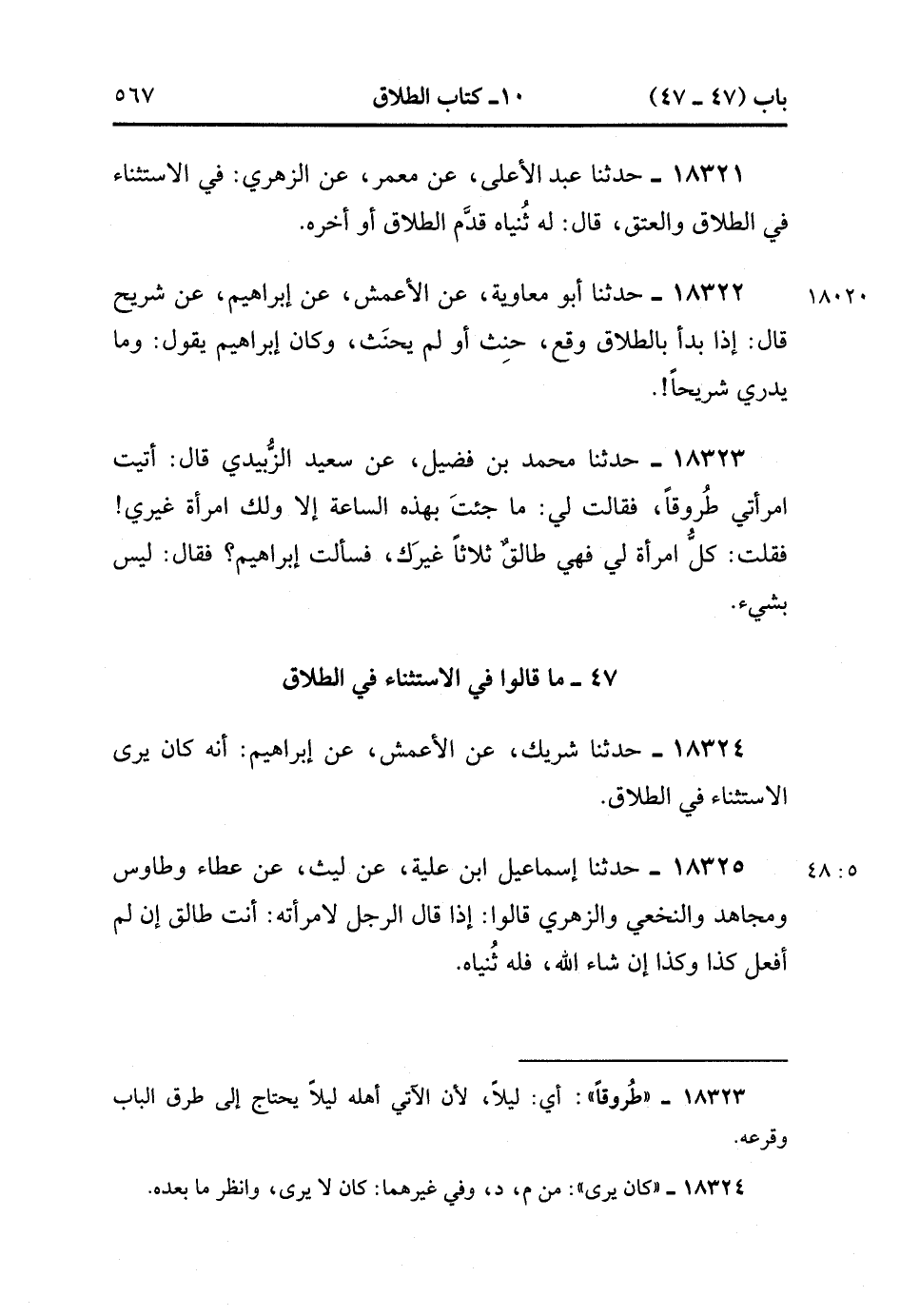 18324- حَدَّثَنَا شَرِيكٌ ، عَنِ الأَعْمَشِِ ، عَنْ إبْرَاهِيمَ ؛ أَنَّهُ كَانَ يَرَى الاِسْتِثْنَاءَ فِي الطَّلاَقِ.