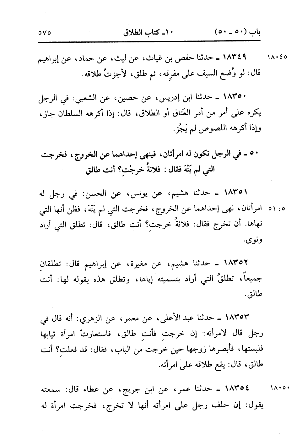 18349- حدَّثَنَا حَفْصُ بْنُ غِيَاثٍ ، عَنْ لَيْثٍ ، عَنْ حَمَّادٍ ، عَنْ إِبْرَاهِيمَ ، قَالَ : لَوْ وُضِعَ السَّيْفُ عَلَى مَفْرِقِهِ ، ثُمَّ طَلَّقَ ، لأَجَزْتُ طَلاَقَهُ.